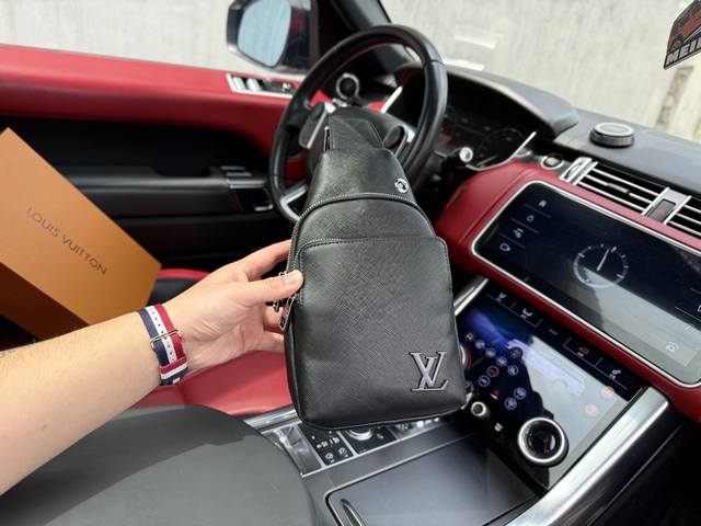 High-end new "Louis Vuitton" LV chest bag, Louis Vuitton shoulder bag, crossbody bag, Louis Vuitton Porte Cartes crossbody bag with gradient print. Unisex couple's style. Black smart shoulder strap design, suitable for left or right shoulder carry. Designed for enhanced carrying comfort; double zipper closure ensures the secure storage of valuables. High-definition hardware logo and dedicated lining. Smooth zippers, smooth edges, and exquisite workmanship in every detail! A must-have for trendy men. Dimensions: 16 x 34 x 6 cm. Comes with a foldable gift box.