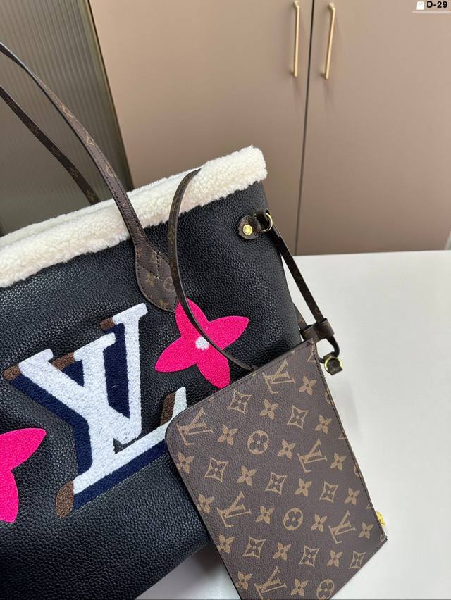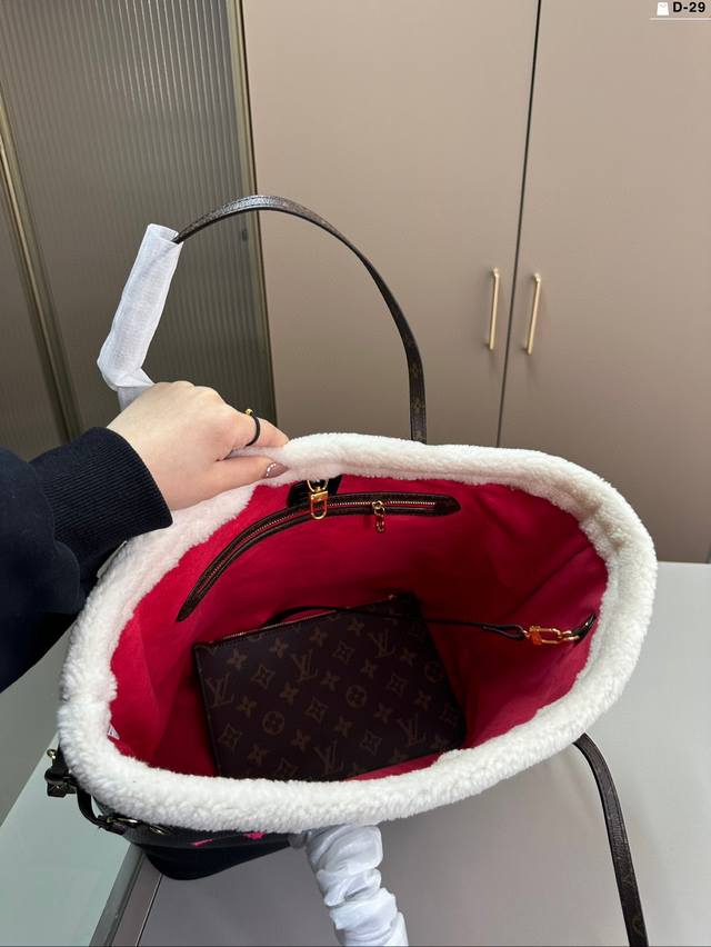 LV Autumn/Winter Limited Edition Teddy Bear Furry Shopping Bag. Extra Large Capacity. Keep it warm all winter long! D-29 Size 33 x 17 x 28 cm.