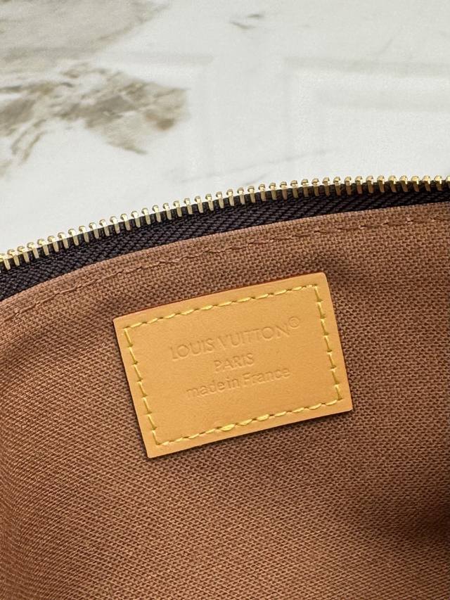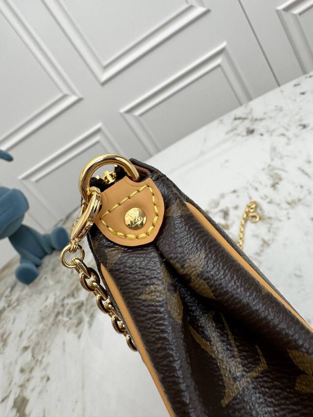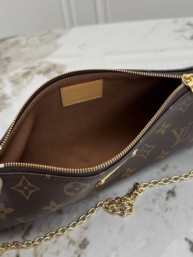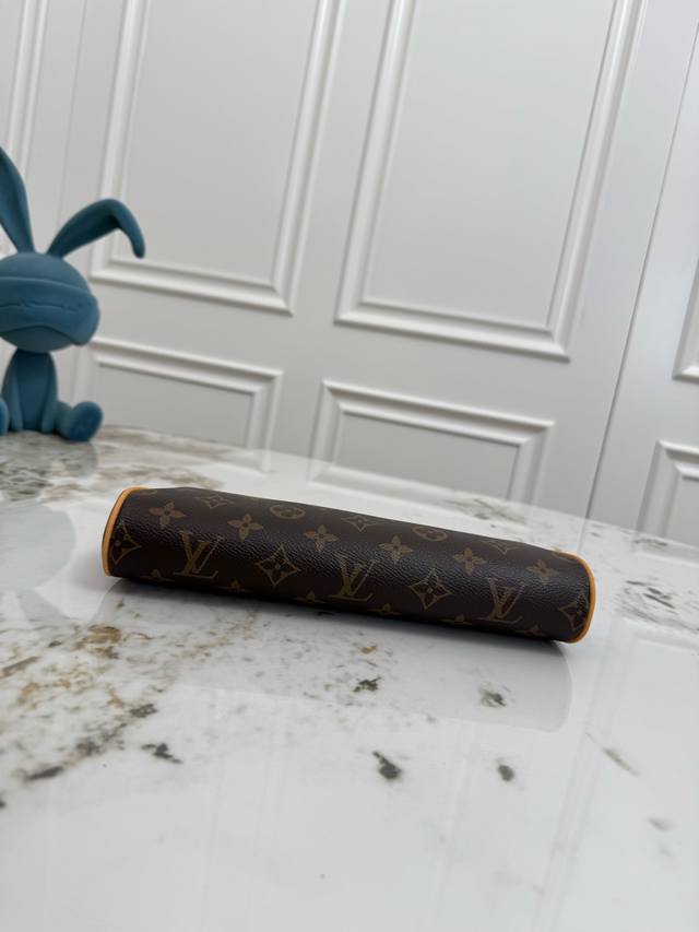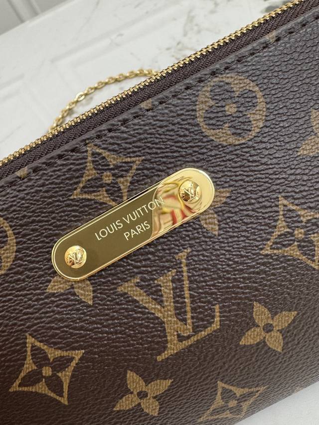 M13567 This Pochette Eva handbag features the brand's Monogram canvas with contr