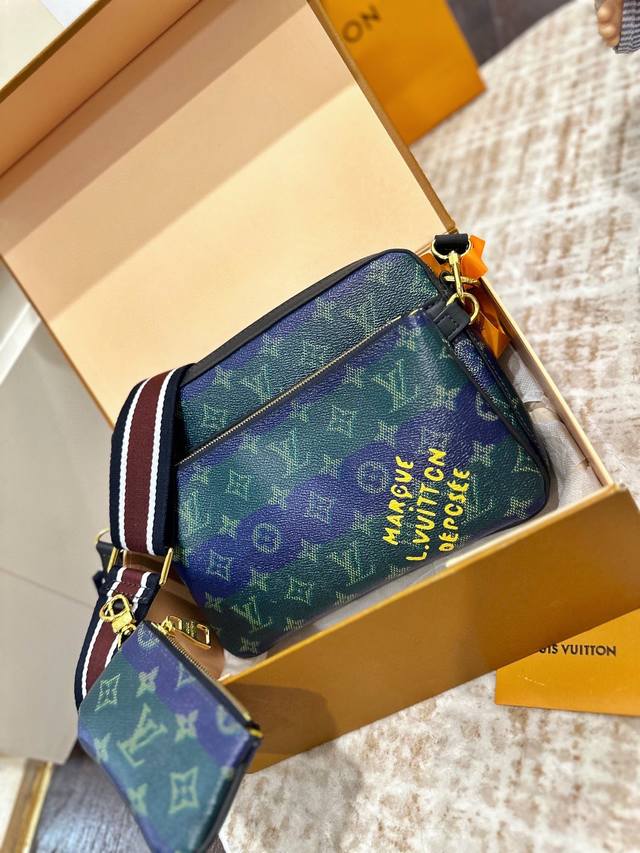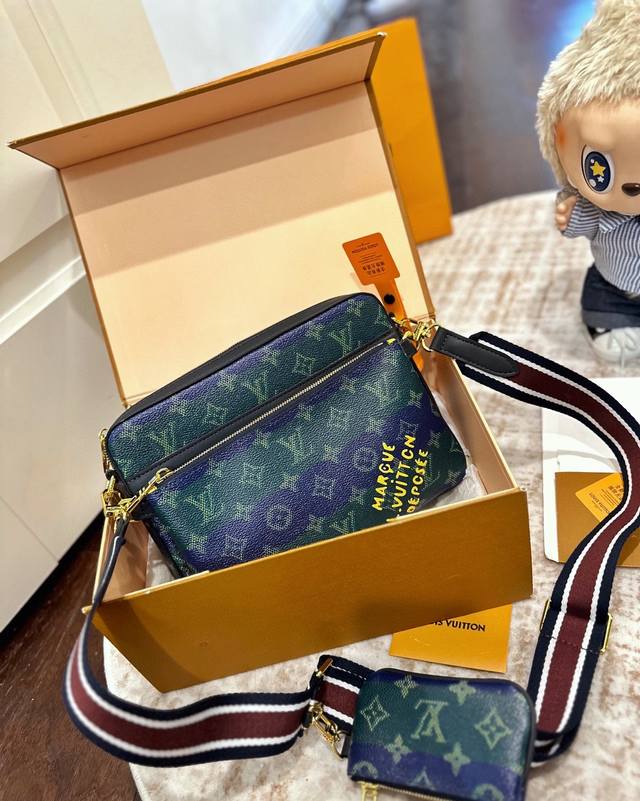 Official website double box packaging Ddd Original high-end "LV Louis Vuitton" three-in-one men's crossbody bag Imported original fabric, boutique hardware, logo, dedicated canvas lining, genuine logo Size: 25 x 18 cm DDD