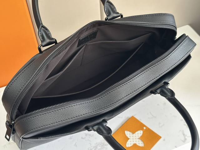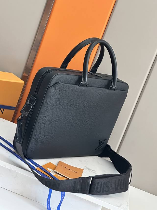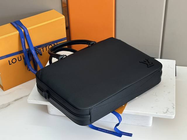 Original calfskin This Pilot cowhide briefcase combines modern design with practical functions. The inner pockets and compartments are opened and closed with magnetic buckles, making it easy to take out and put your belongings. The front pocket's beveled corner design and the same color LV letters show the style of the LV Aerogram series. Model: 23778 Size 39 X 29 X 6 cm