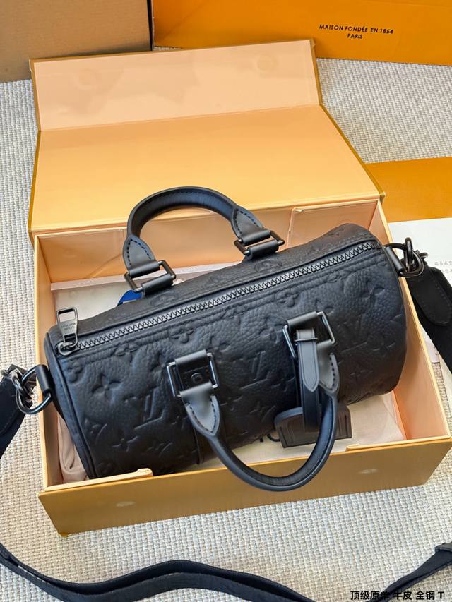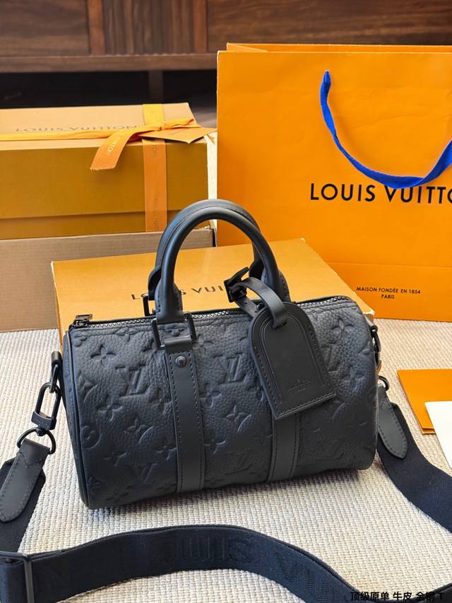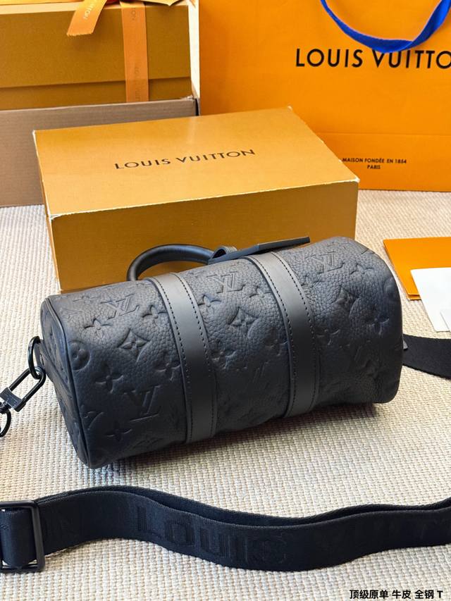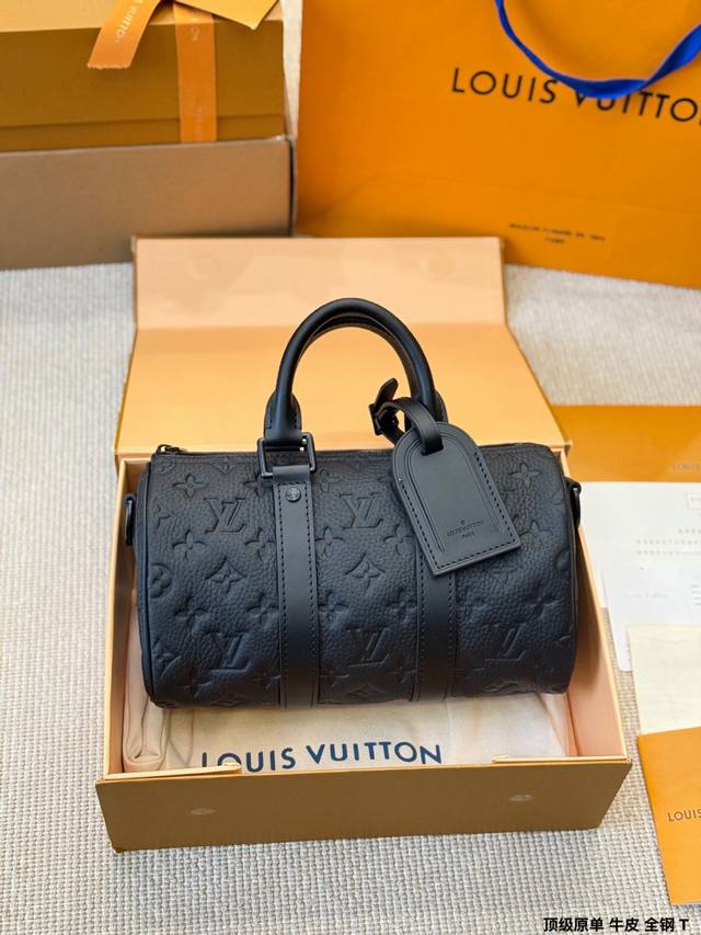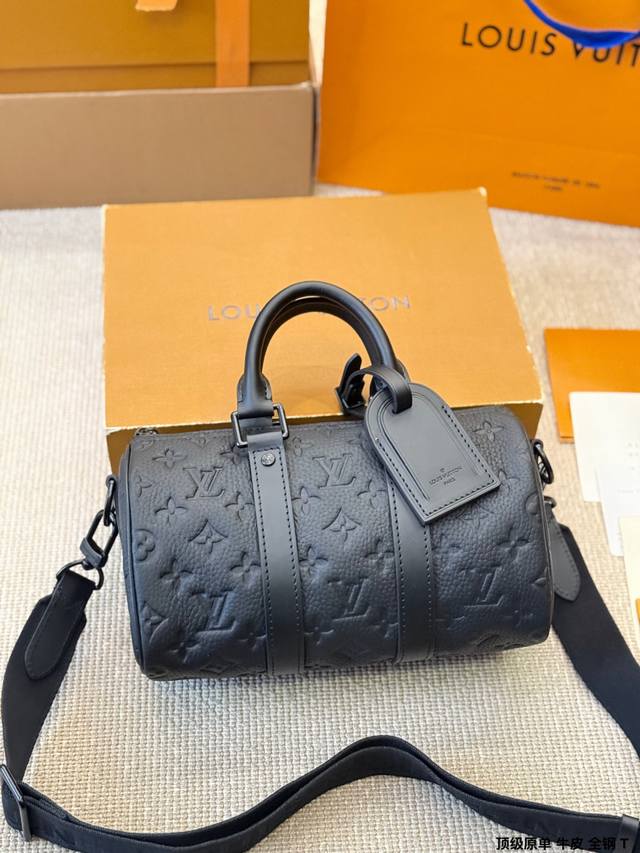 Original single-piece version, cowhide and steel, Ddd LV Keepall 25 Black Warrior Pillow Bag. Ddd LV Keepall 25 Black Warrior Pillow Bag, black embossed cowhide leather + Monogram embossing, understated yet luxurious! Dimensions 25