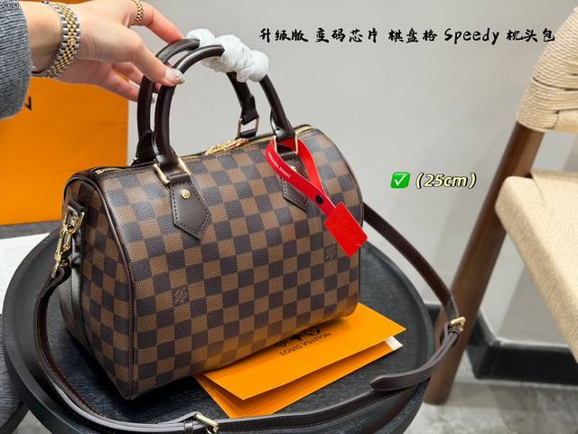 pp p210 Ddd Full Gift Box Packaging Ddd LV Brown Checkered Speedy Pillow Bag Ddd As expected of LV's flagship series Ddd This one is made of a more casual canvas checkered pattern Ddd Perfect as a commuter bag, travel bag, or diaper bag Ddd No need to worry about size and durability Ddd It has an elegant and relaxed casual feel~ Ddd Sizes: 35cm, 30cm, 25cm, 20cm, 16cm DDD