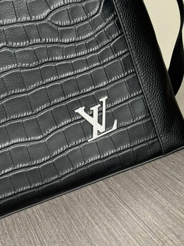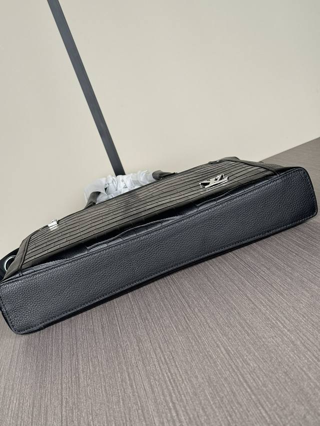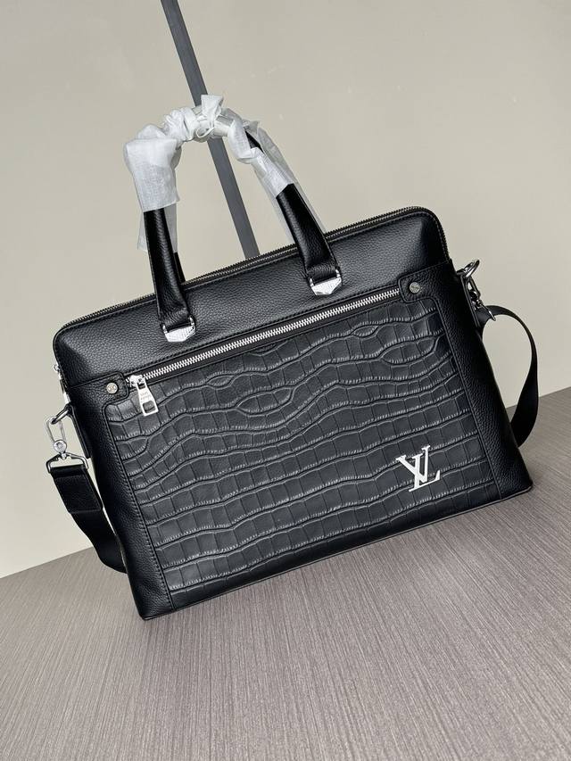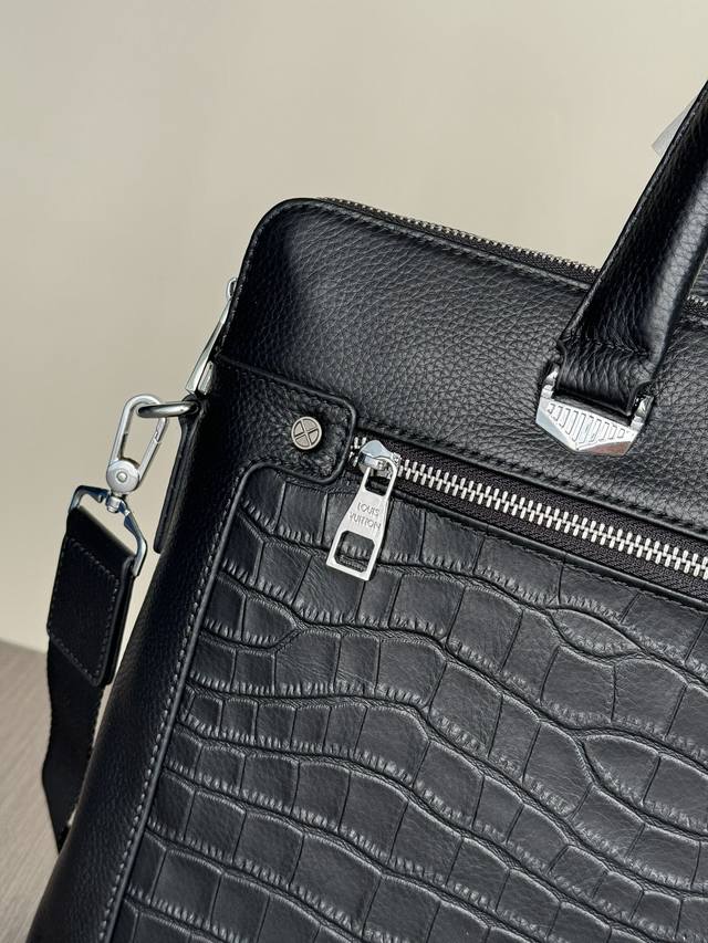 The latest hot-selling Lv double-zippered briefcase from our top-tier, premium countertop Mouse is shipping in large quantities. We won't boast about our top-tier, original countertop products; let the real thing speak for itself. While styles can be copied, the materials and craftsmanship can't fool those who understand. Premium materials inside and out: top-quality imported Italian calfskin with a lychee and crocodile grain, ultra-high-definition hardware logo, premium hardware, a dedicated high-end lining, dedicated hardware sliders, a zipper with faux-burst treads that becomes smoother with each tug, and ultra-smooth oiled edges. Crafted from top-tier designer-designed, top-grain cowhide, this bag boasts a spacious, multi-compartment design with space for laptop folders and hidden zippers. It's a must-have for travel, featuring a super comfortable, soft, and durable leather with crisp, grained texture. Crafted with five stitches per inch, this one-of-a-kind bag exudes elegance and substance. Top-tier craftsmanship and meticulous attention to detail ensure impeccable quality. Color: Black, Model: 9958-1, Size: 39-29-7
