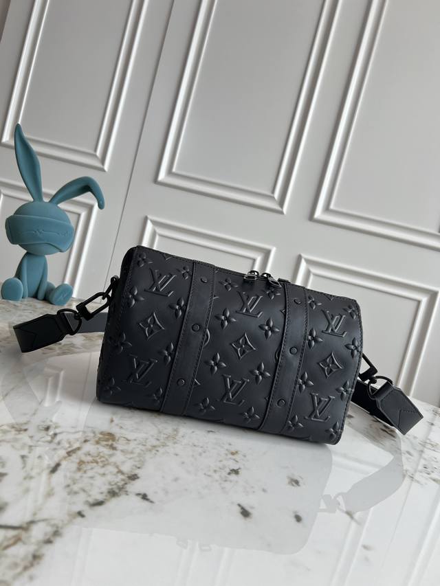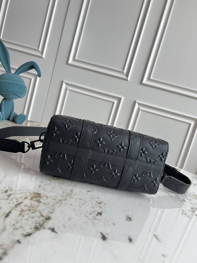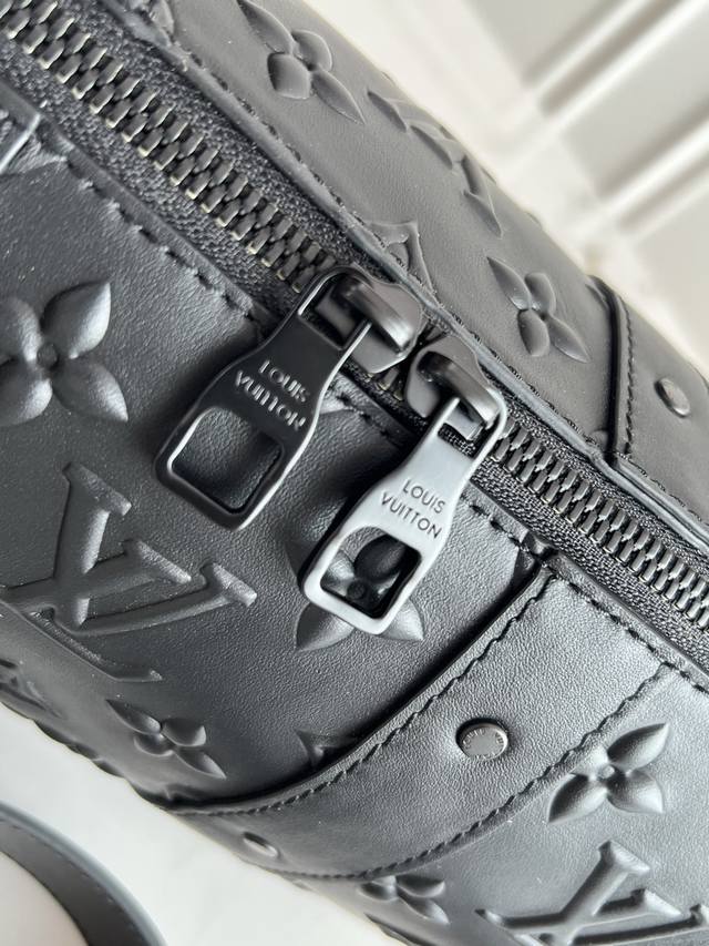 The original, top-grade M57955 Black City Keepall handbag is crafted from Monogram Seal cowhide. Its soft texture accentuates Louis Vuitton's timeless Monogram embossing, creating a subtle and elegant look. Its compact silhouette and removable, adjustable shoulder strap make it a striking choice for city travel. Dimensions: 27 x 17 x 13 cm