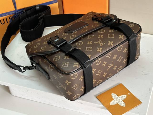 Top original development, all-steel hardware This Lv Trail messenger bag draws inspiration from brand elements, integrating the logo shoulder strap and hardbox style quick-release buckle into the classic Monogram Macassar canvas, which can be changed at will. Ample space for storing personal items. Monogram Macassar coated canvas-cowhide leather trim-fabric lining-metal parts-flap with quick-release buckle-spacious main compartment-inner pocket-shoulder strap: detachable and adjustable! ! Model: M46972; Size: 31X22X11Cm