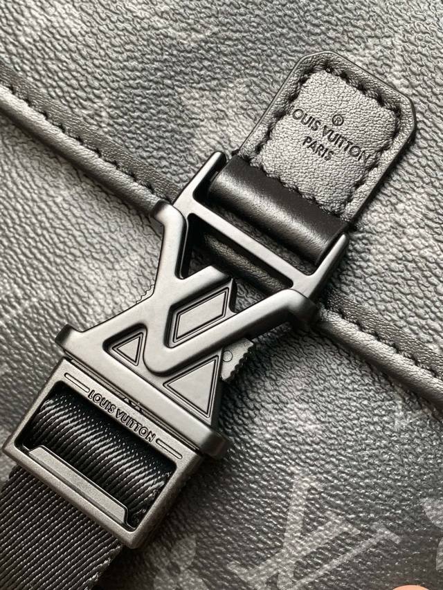 Top original single code change chip model number: M12518 Black flower exclusive real shot background Getaway messenger bag is made of Monogram Eclipse canvas, which combines vitality and functional considerations. The logo shoulder strap is a classic detail, and the quick-release buckle follows the traditional Louis Vuitton hard case elements. The compact and close-fitting configuration is convenient for storing personal items. Size; 19*20*6Cm