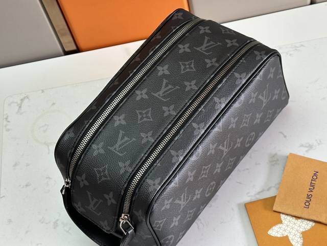 Top-Grade Original M46354 Vintage! Makeup Bag Locker Dopp Kit Combines Modern Fashion Style With Louis Vuitton's Iconic Elegance, Featuring The Brand's Classic Monogram Eclipse