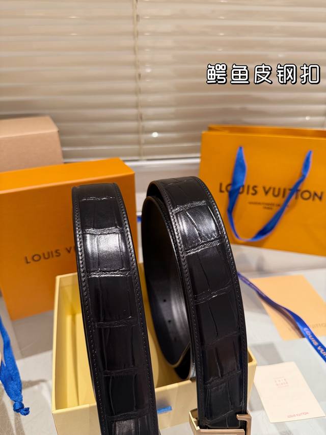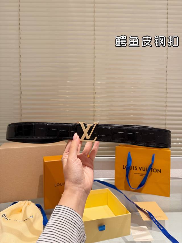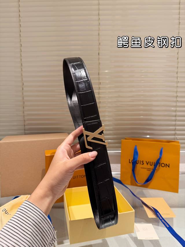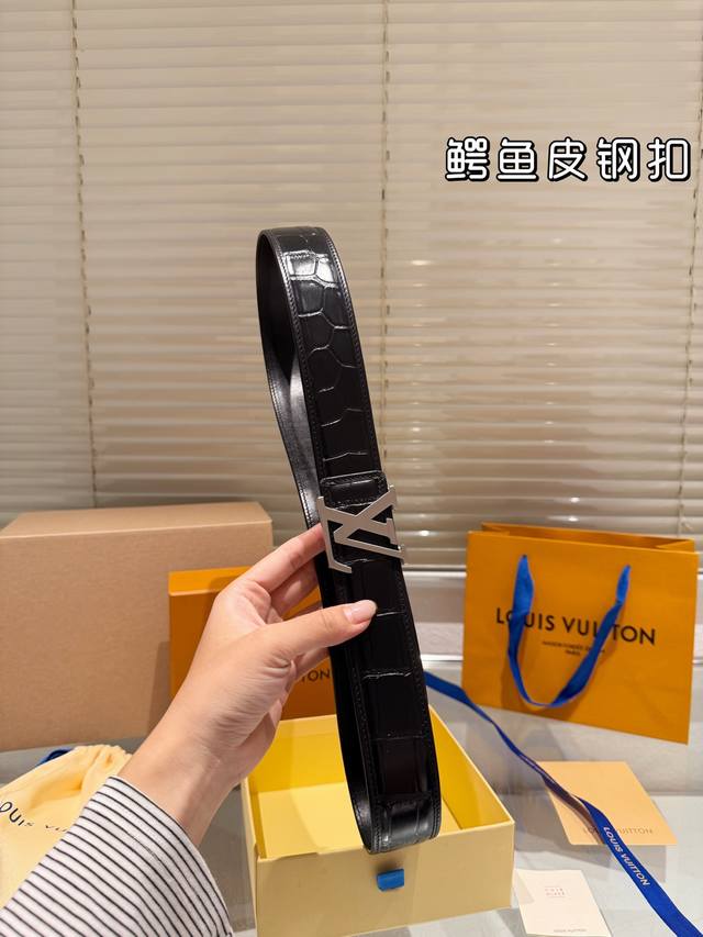 Top-quality original crocodile leather with steel buckle. New LV product with steel buckle and top-grain crocodile leather. Perfect for gifting or keeping for yourself. Full packaging.