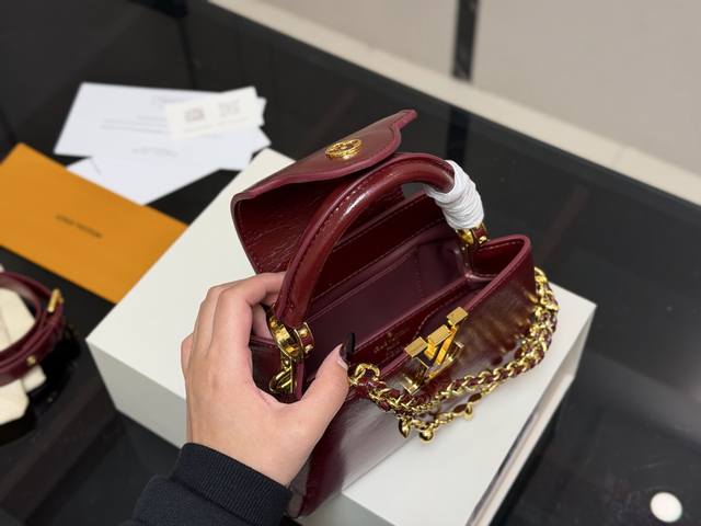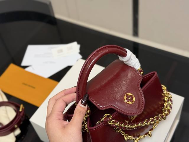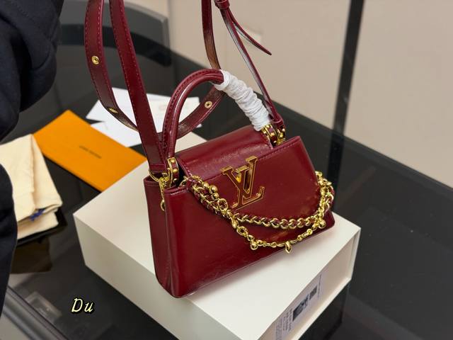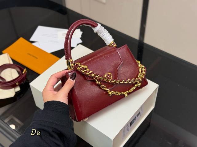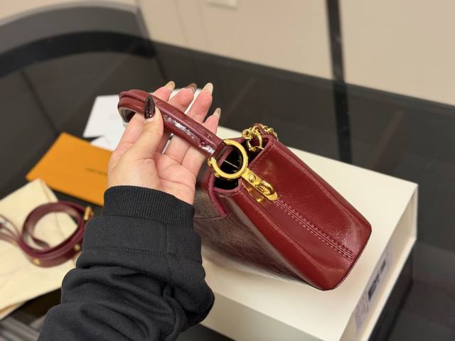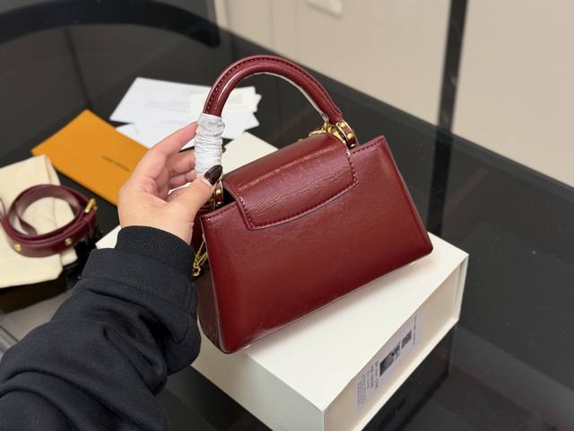 / Comes with a folding box. Size 22.12cm. LV Capucines handbag. Made of full-grain