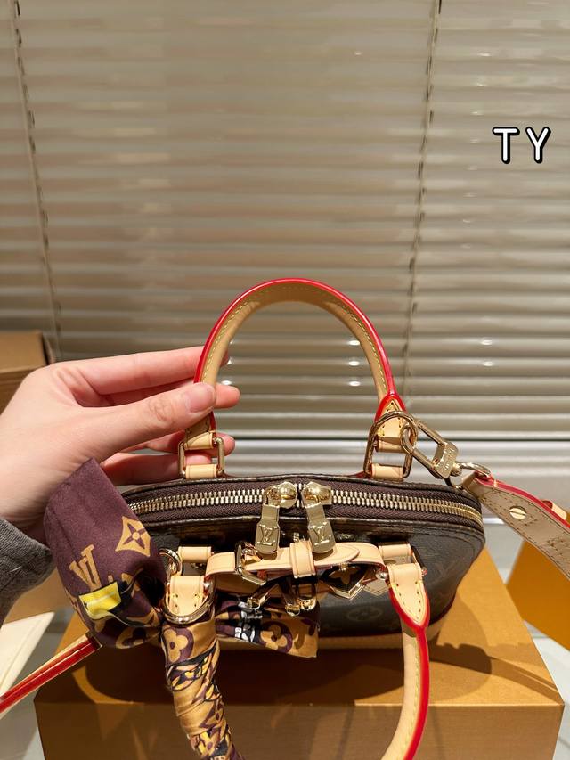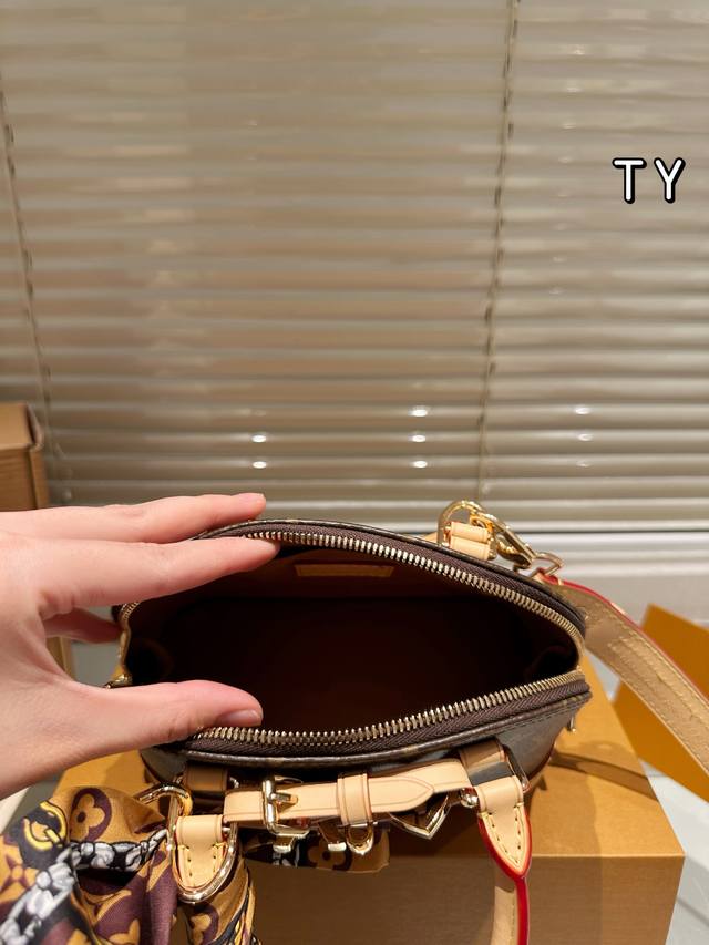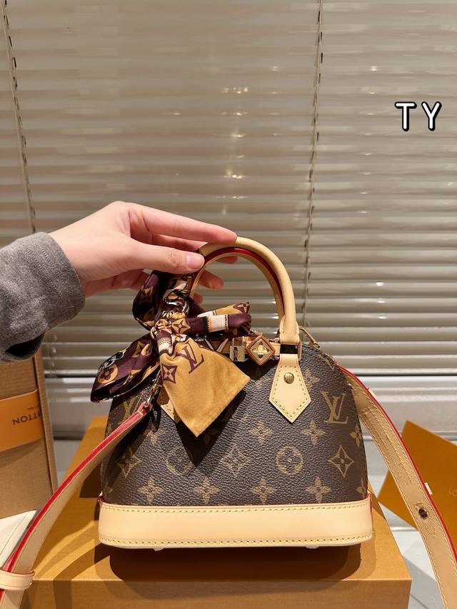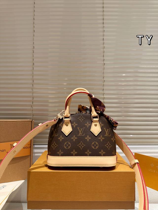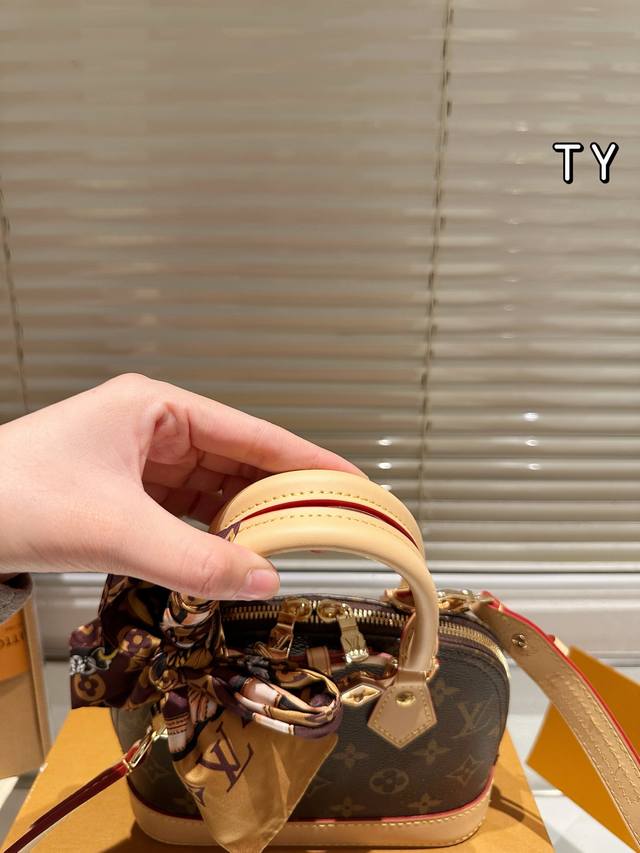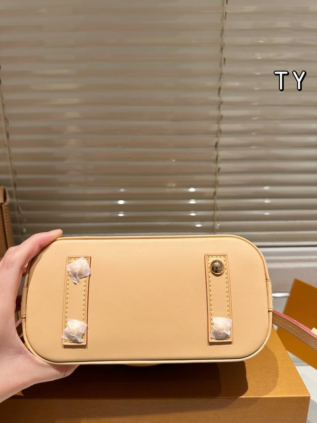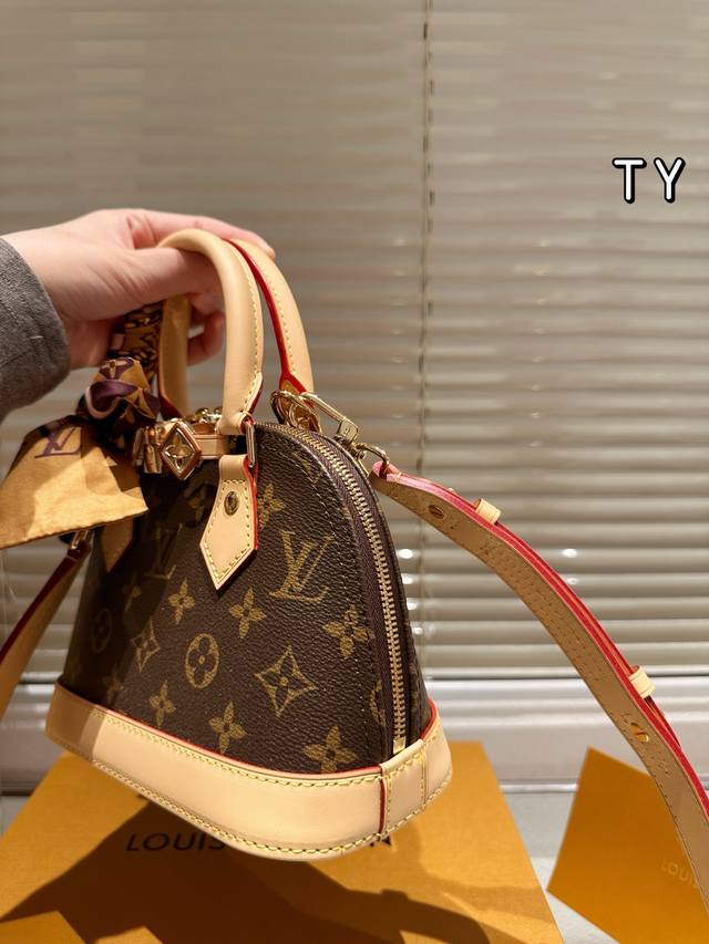 Cowhide Version DDD LV Alma BB Monogram Shell Bag DDD LV Alma BB Monogram Shell Bag, classic Monogram canvas with vegetable-tanned leather handles, elegant and recognizable. Round shell shape DDD Moderate capacity, can hold a phone and cosmetics. DDD Metal padlock embellishment, can be carried by hand or crossbody, versatile and suitable for any occasion! Vegetable-tanned leather will change color over time, full of retro charm, a classic and popular LV style, a must-have for fashionistas! DDD Dimensions 18 x 12 x 8 cm DDD