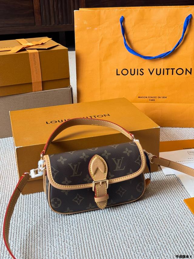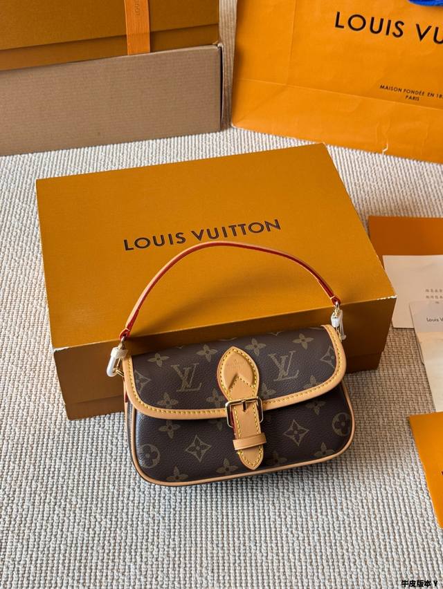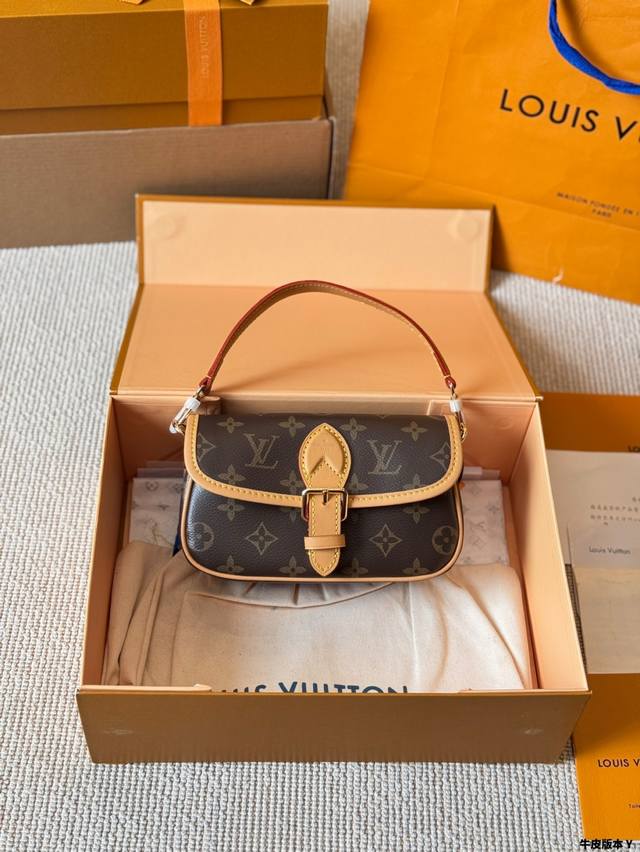 Lv Nano Diane Cowhide Underarm Baguette Bag Full Steel Hardware Full Gift Box Packaging Size 18 12Cm