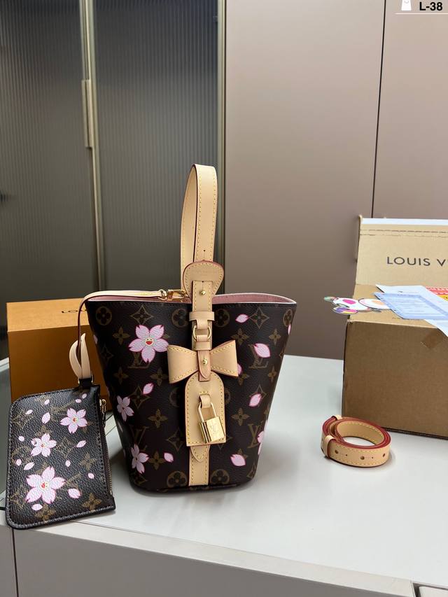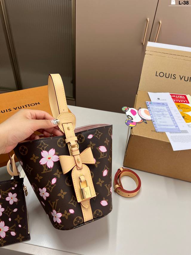 / Decorative Lock Without Key Lv Louis Vuitton Bucket Bag L-38 Size 17 18 Folding