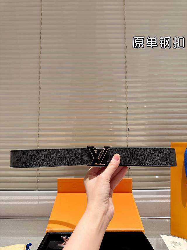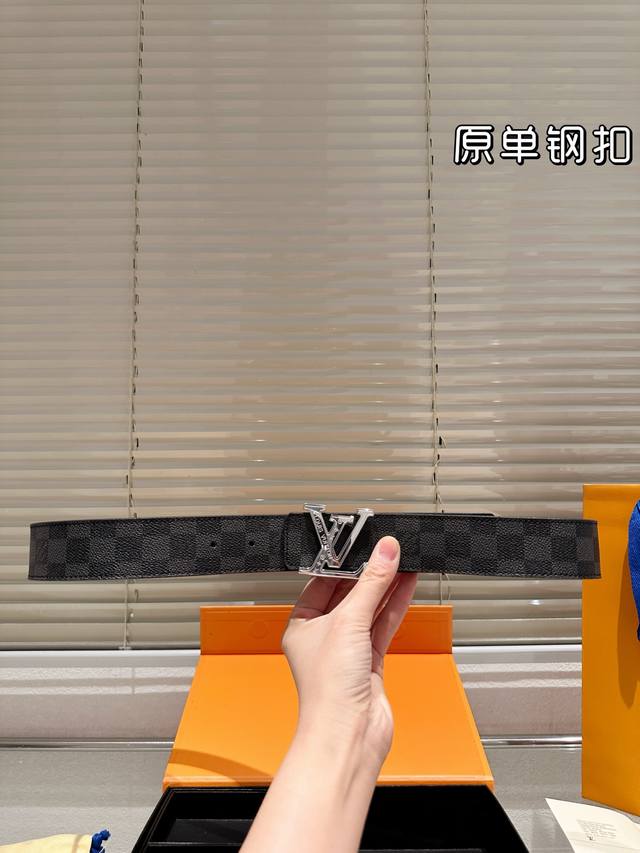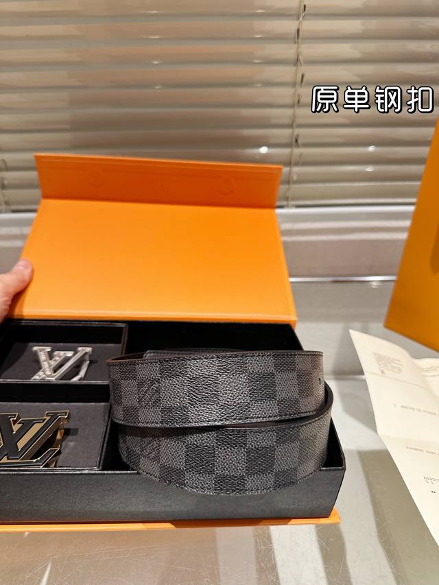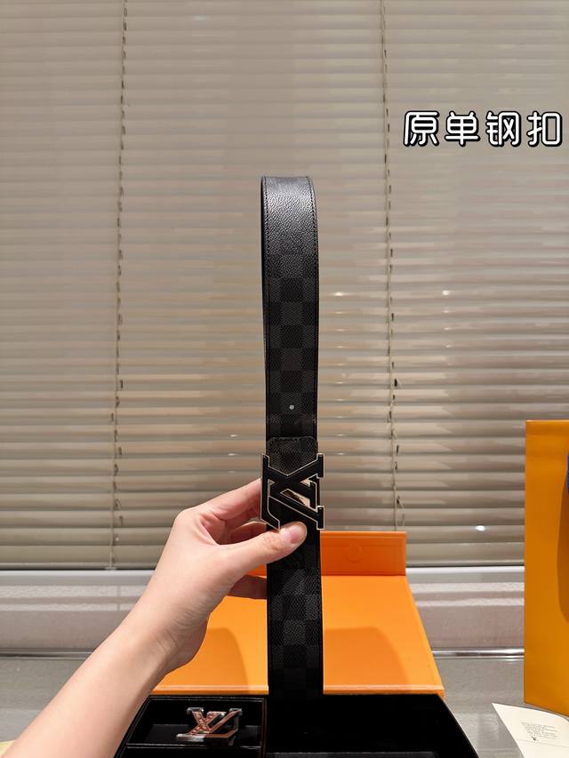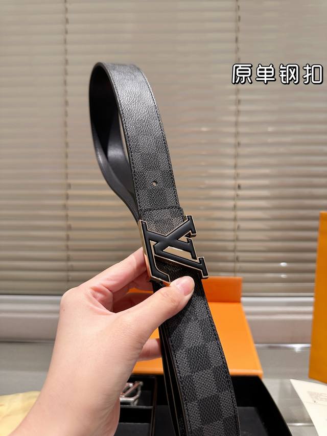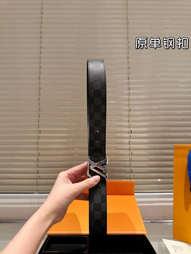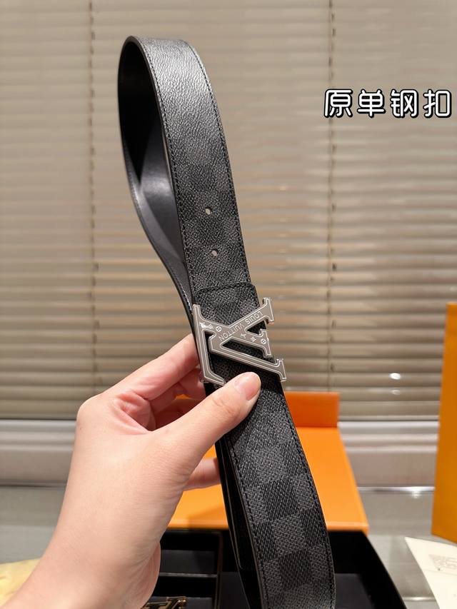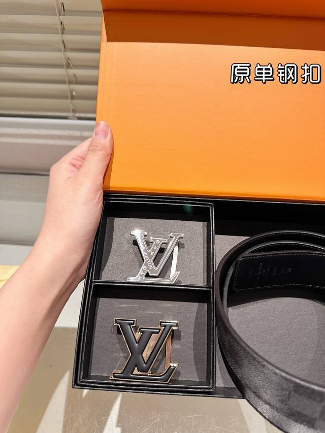Double-headed steel buckle DDD High-quality version! LV cowhide leather belt - the most popular version among unisex belts - excellent quality, complete packaging! Hardware will absolutely not fade, belt buckle is the same as in the boutique - comes with gift box, tote bag, and invoice DDD