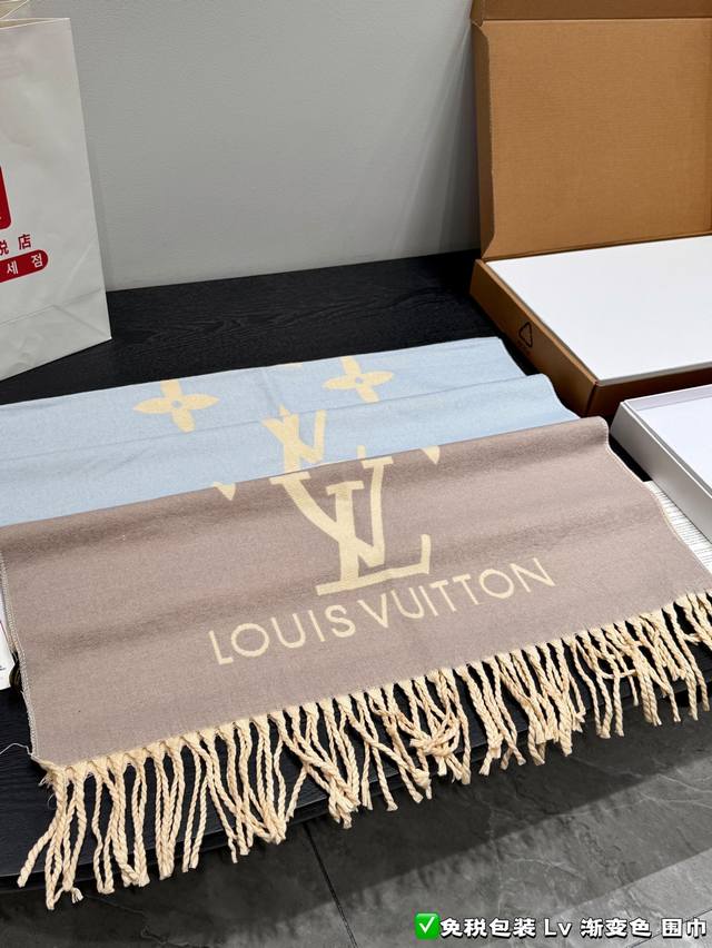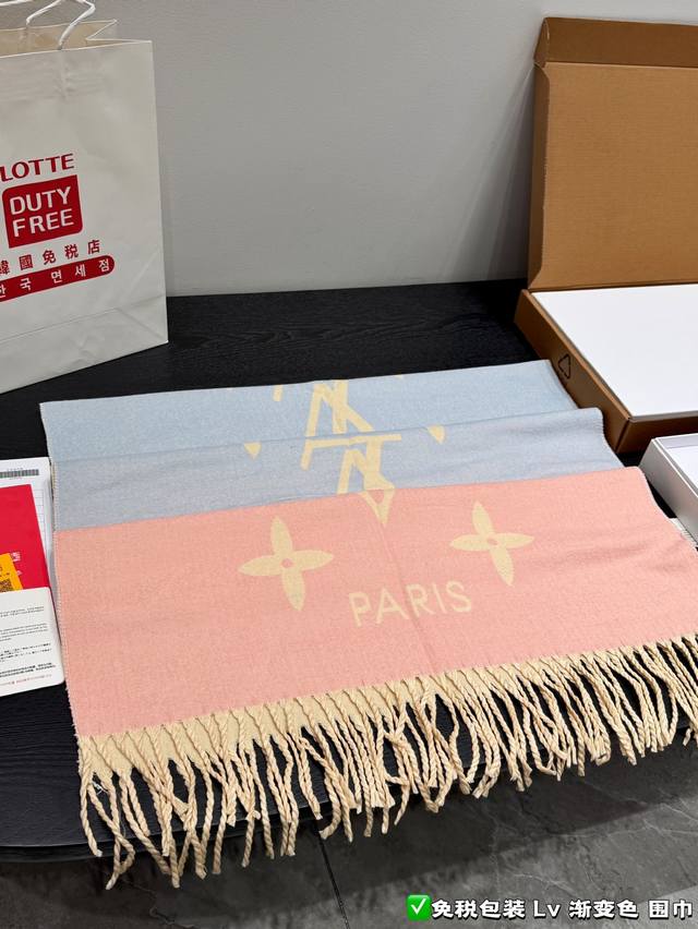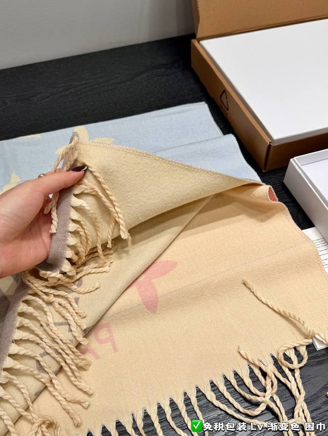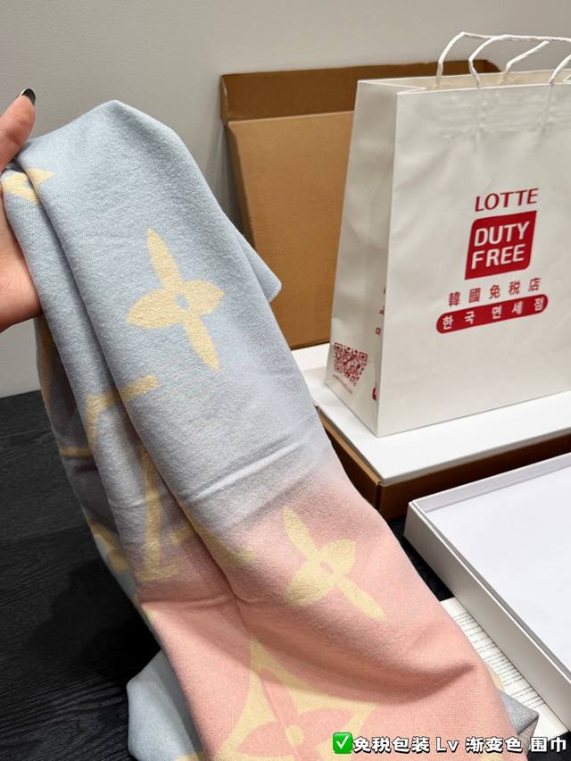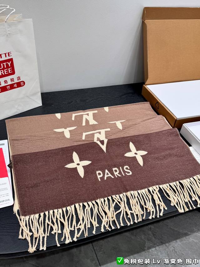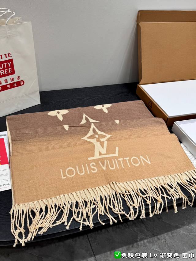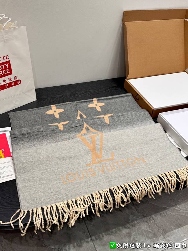 Duty-free gift box packaging DDD LV gradient cashmere scarf DDD I hereby declare this to be the most beautiful scarf I bought this year!!! DDD Black and gray tones suit everyone, versatile and practical DDD 100% cashmere, super soft and supple, not itchy at all DDD