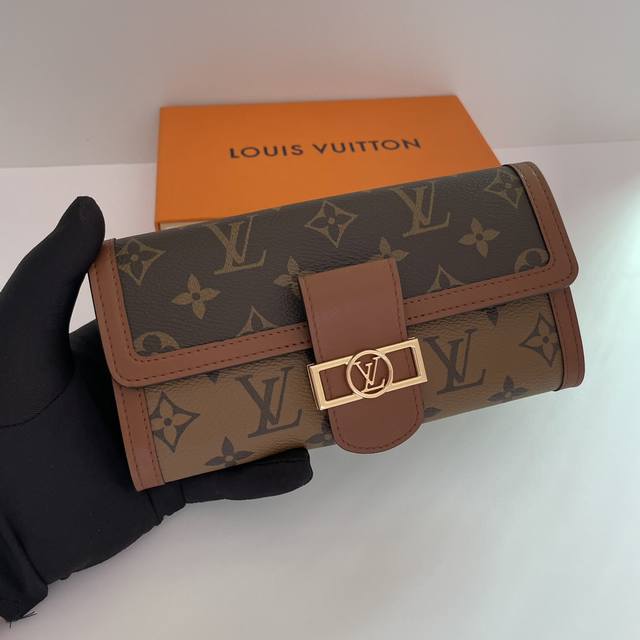 Factory P Price Top Original M46645 This Sarah Dauphine Wallet Combines Monogram And Monogram Reverse Canvas, Embellished With Cowhide Trim And Retro Lv Circle Lock, Cleverly Reproducing The Classic Design Of The Dauphine Series. The Card Compartment And Monogram Reverse Canvas Zipper Coin Pocket Highlight Functional Considerations.