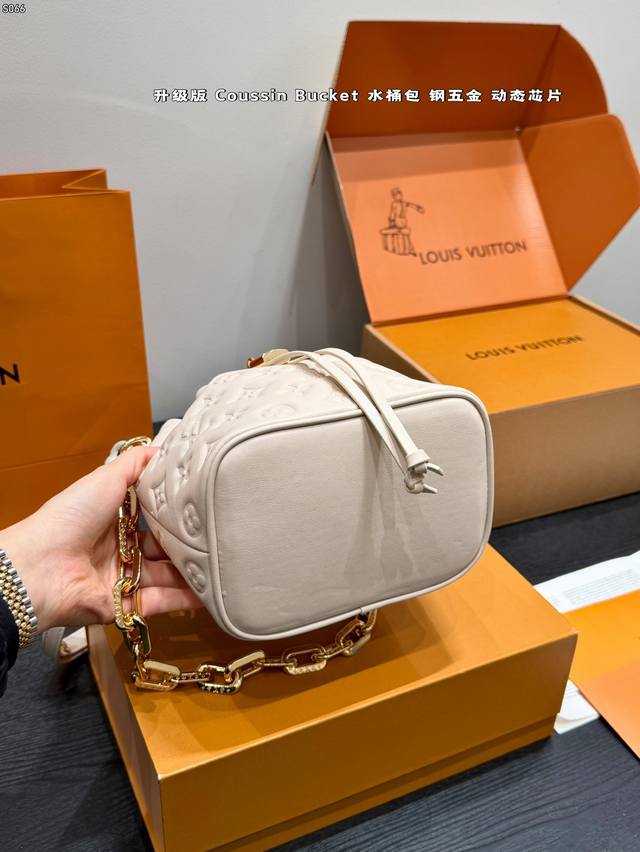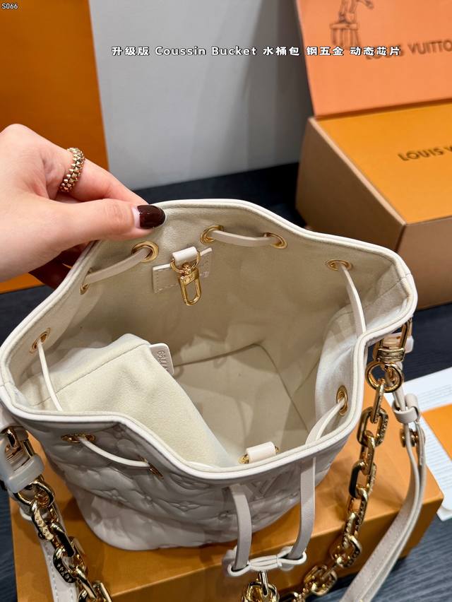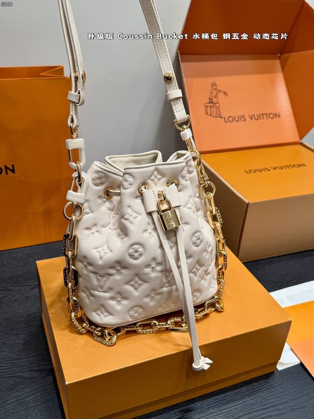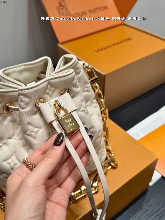 Full Gift Box Packaging DDD Upgraded Dynamic Chip DDD Lv 25Fw New Coussin Bucket Bag , embossed classic Monogram design, metal chain embellishment, luxurious drawstring design, moderate capacity, super practical for daily commuting and travel, adjustable shoulder strap, can be carried by hand or crossbody. Limited release, extremely hard to find in some markets, definitely a hot item, a must-have for fashionistas DDD Dimensions 17.5X13X22Cm DDD