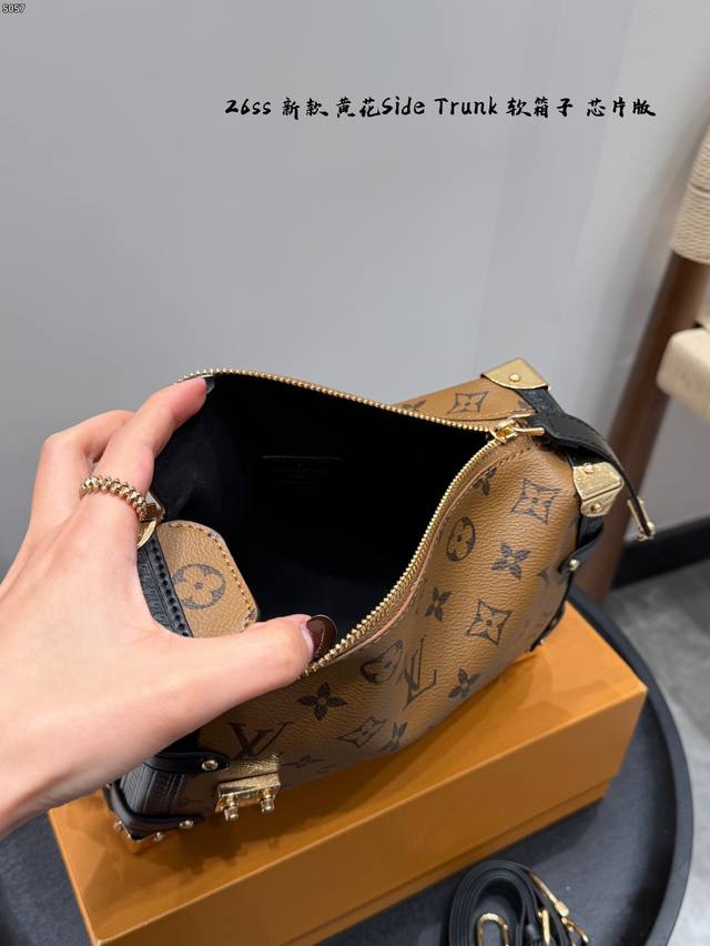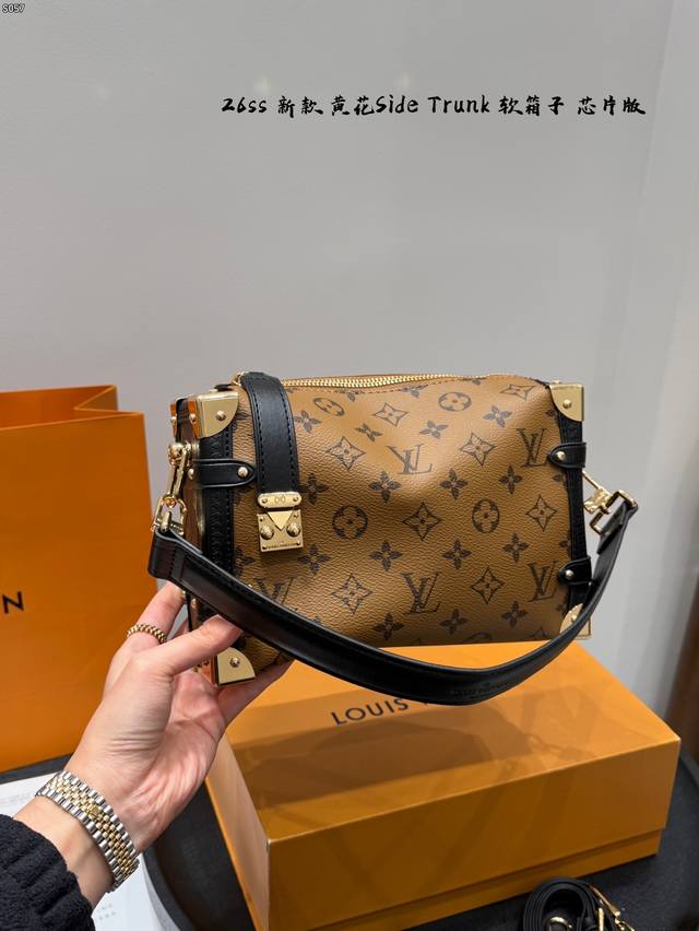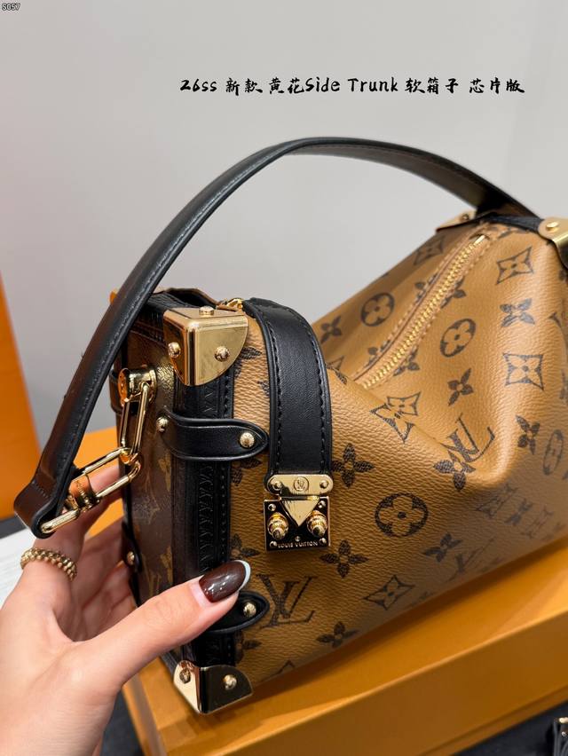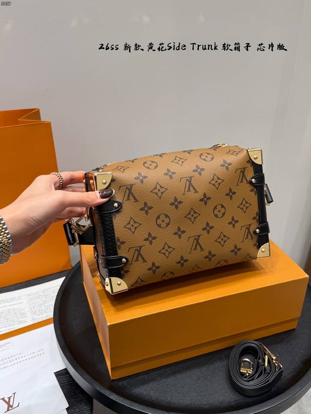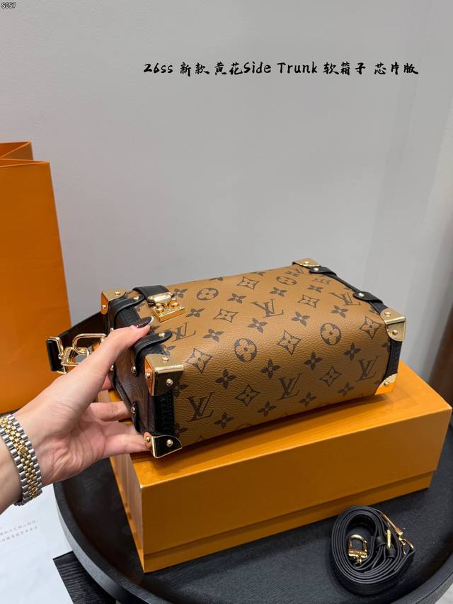 Full Gift Box Packaging DDD With Chip! DDD 26Ss Show Style Yellow Flower Mini Trunk DDD Lv Side Trunk Black Warrior New Box Bag DDD It's a soft box bag with many exquisite little details inside DDD Large capacity, practical and stylish, with interchangeable long and short shoulder straps DDD Whether you're a rich lady or a cute girl, you can create a super beautiful look. DDD Size 23 16Cm DDD