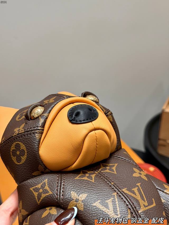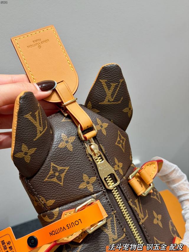 Gift Box Packaging DDD Replica All-Steel Hardware! The Louis Vuitton French Bulldog pet bag is part of Louis Vuitton's pet collection, featuring classic Monogram canvas with leather details. The French Bulldog design is incredibly cute and easily recognizable. It's a moderate size, suitable for small pets, with a comfortable interior and luxurious exterior elements. Not only practical but also a collectible item, it's a favorite among pet lovers and fashionistas alike.