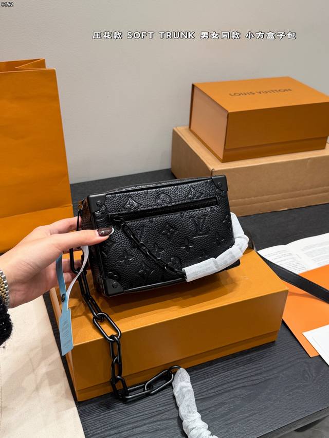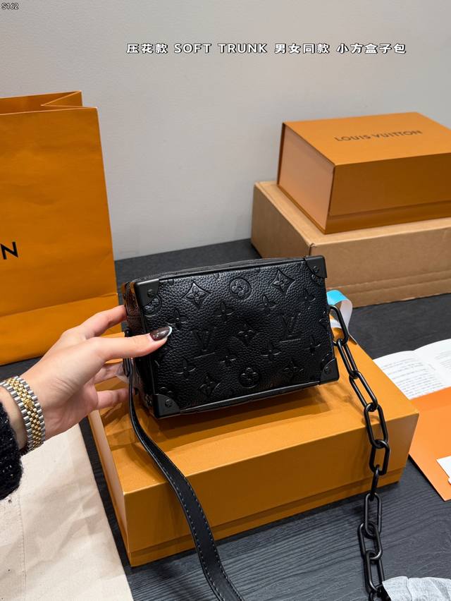 Gift Box Packaging DDD Size: 18X13X8 DDD Lv Classic Chain Crossbody Soft Trunk Bag Small Box DDD It's really a cute square box DDD The color scheme is very sophisticated! It's really adorable! DDD Mini Soft Trunk Box Bag DDD The details are super OK Unisex DDD