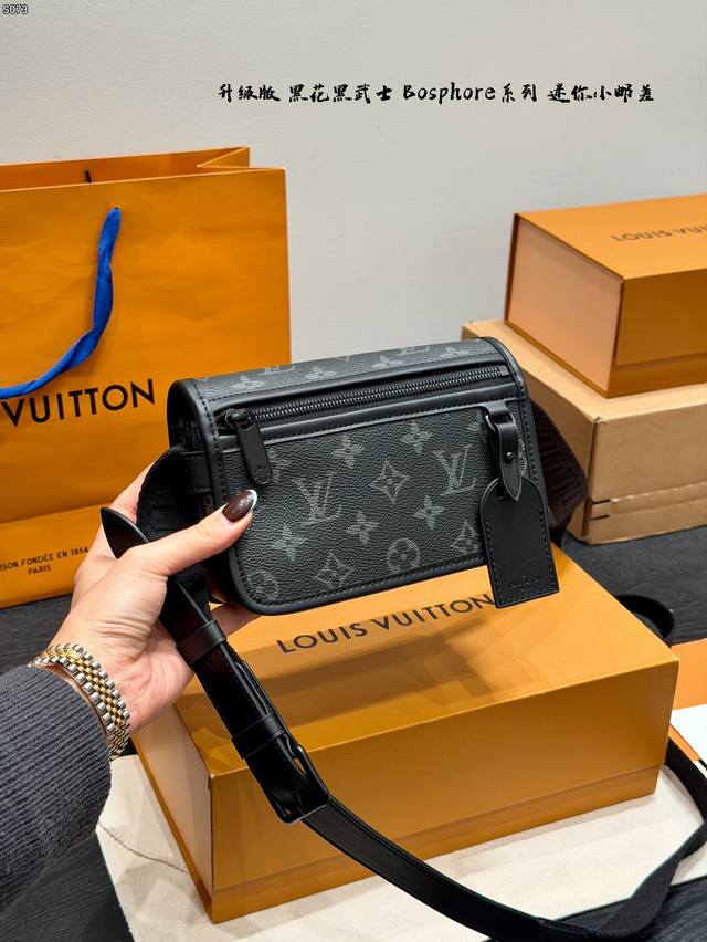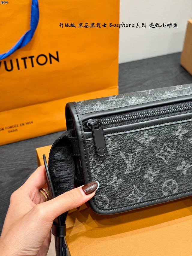 Gift Box Packaging DDD Upgraded Version! Black Floral Black Warrior DDD Lv This Bosphore mini handbag is named after the brand's retro Bosphore series from the 2000s. It's a men's shoulder bag/crossbody bag. Its clean lines and compact design ensure comfortable carrying, while the detachable brand tag adds a touch of classic style. An adjustable fabric shoulder strap runs across the accordion loop, complementing the zippered front pocket for refined details. DDD Dimensions: 19*12Cm DDD