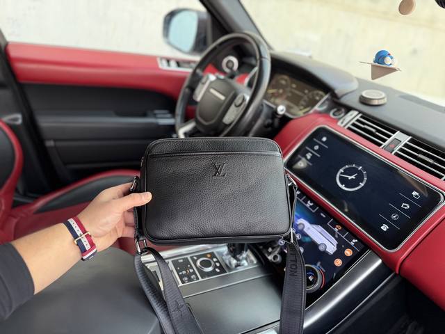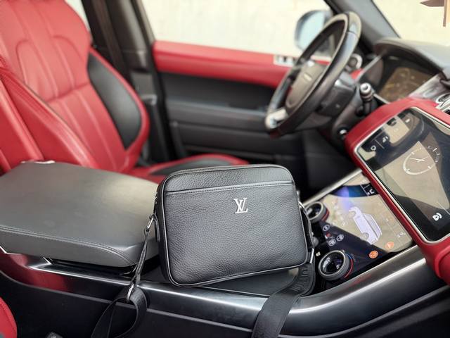 High-end new "Louis Vuitton" Lv shoulder bag, Louis Vuitton cowhide shoulder/crossbody bag, adjustable shoulder strap, magnetic snap closure, top-grain cowhide leather, men's black, ultra-high-definition hardware logo, smooth zipper, super smooth edge coating, exquisite workmanship, every detail is perfect! A must-have for men. Size: 25.5X18.5X6.5Cm. Comes with gift box.