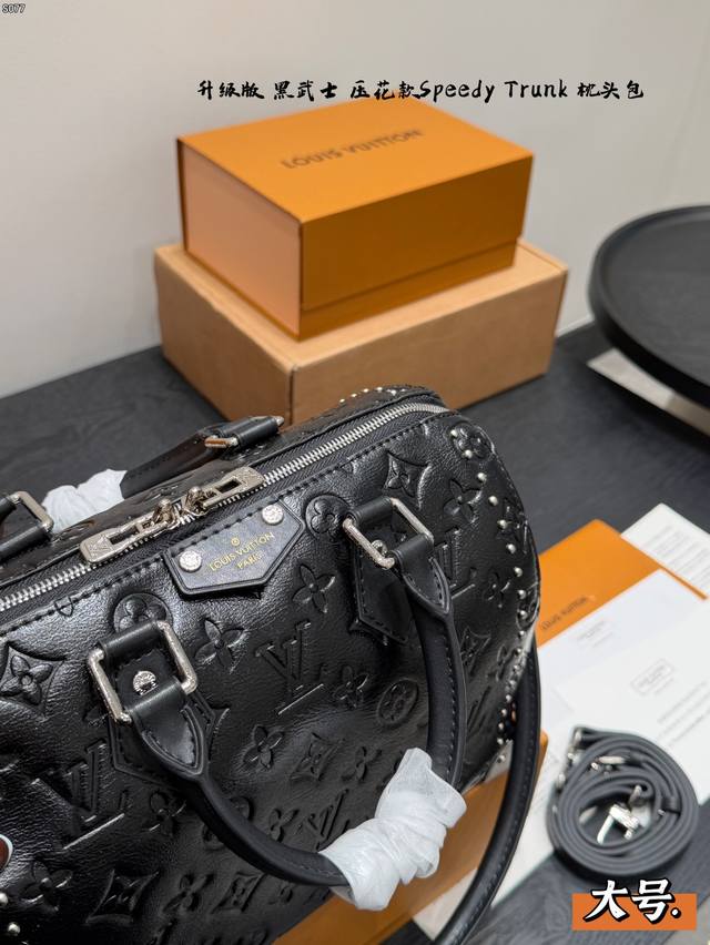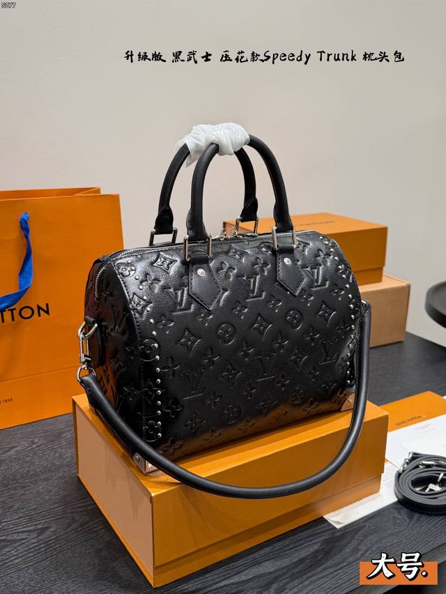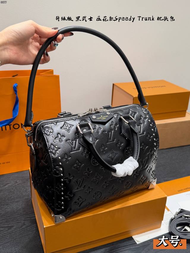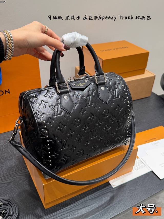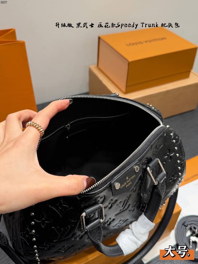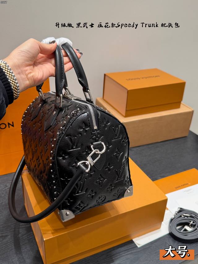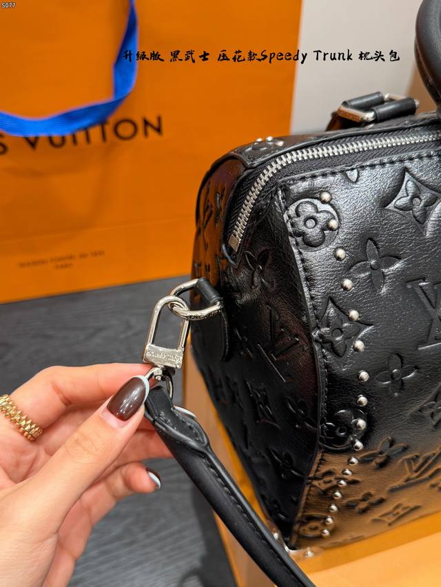Large Full Set Gift Box Packaging DDD Upgraded Version DDD Lv Black Warrior Embossed Cruise 25 Bag DDD Runway Style Rivet Pillow Bag Handbag Speedy 25 Trunk Pillow Bag with Iron Legs DDD Lv This 2025 Early Spring New Arrival in Barcelona is so beautiful DDD Size Large 25Cm DDD