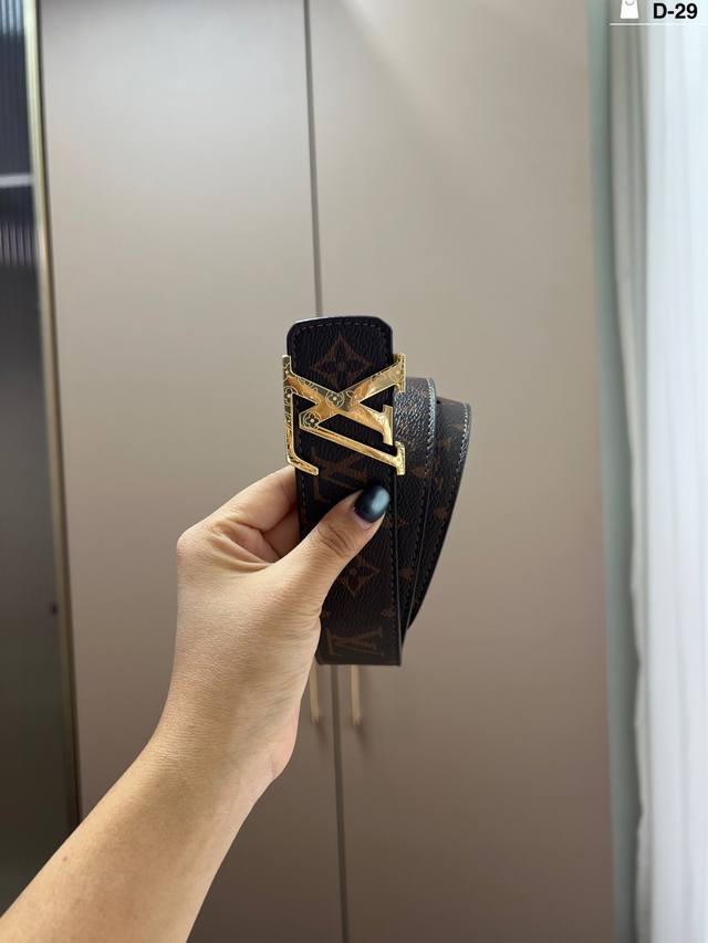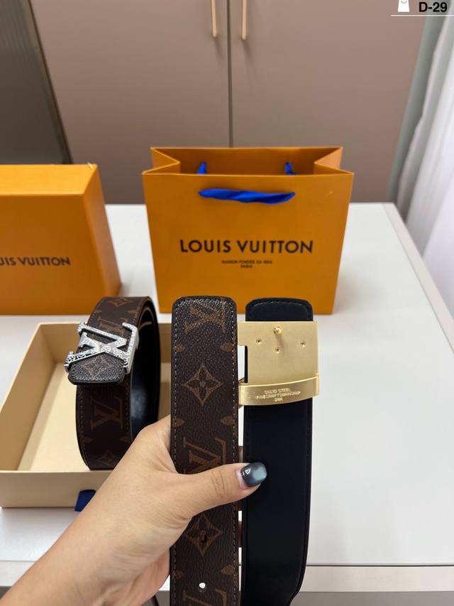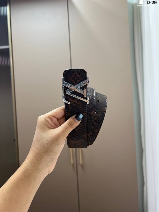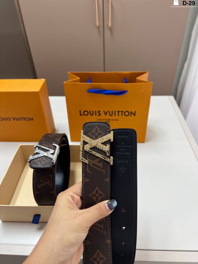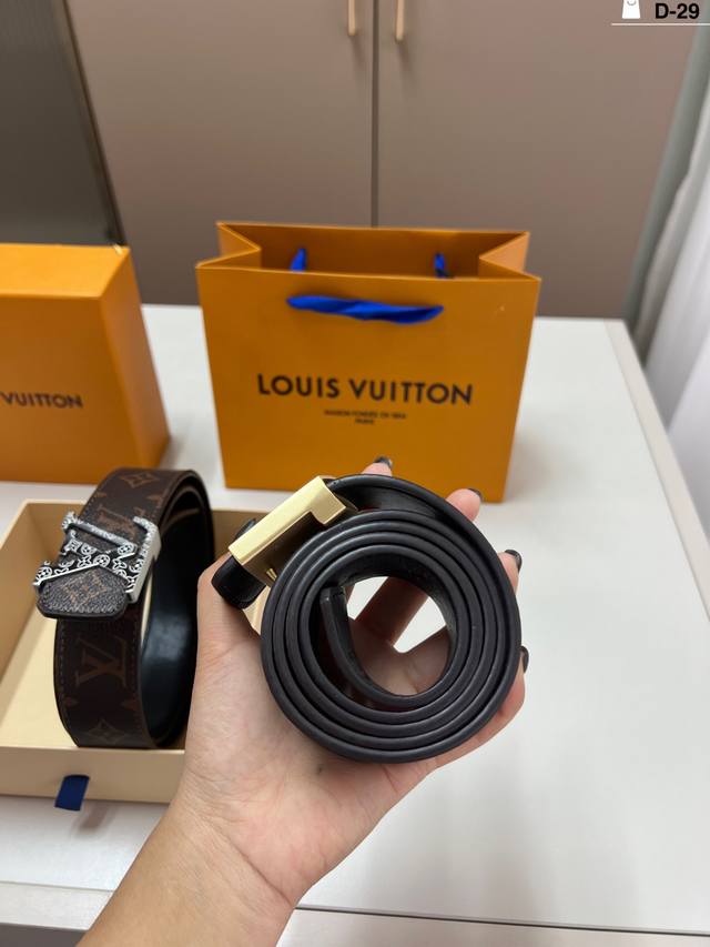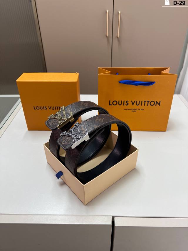 / Louis Vuitton Men's Leather Belt D-29 Full Set Packaging + Tote Bag
