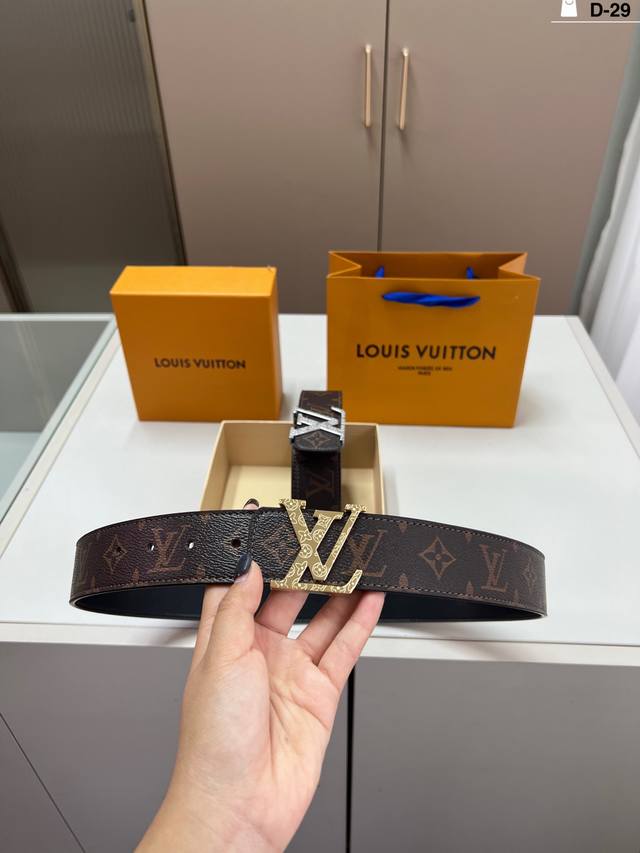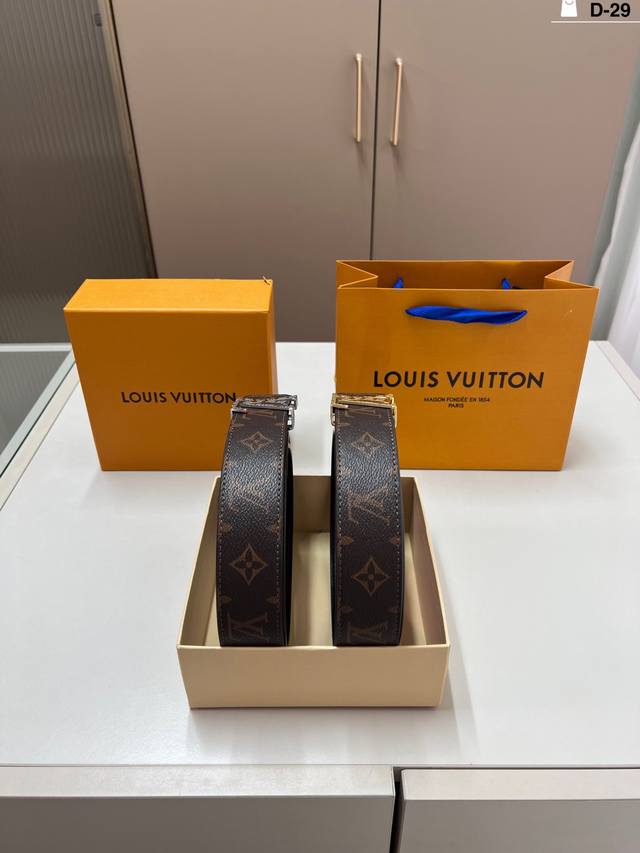 Louis Vuitton Men's Leather Belt D-29 Full Set Packaging + Tote Bag