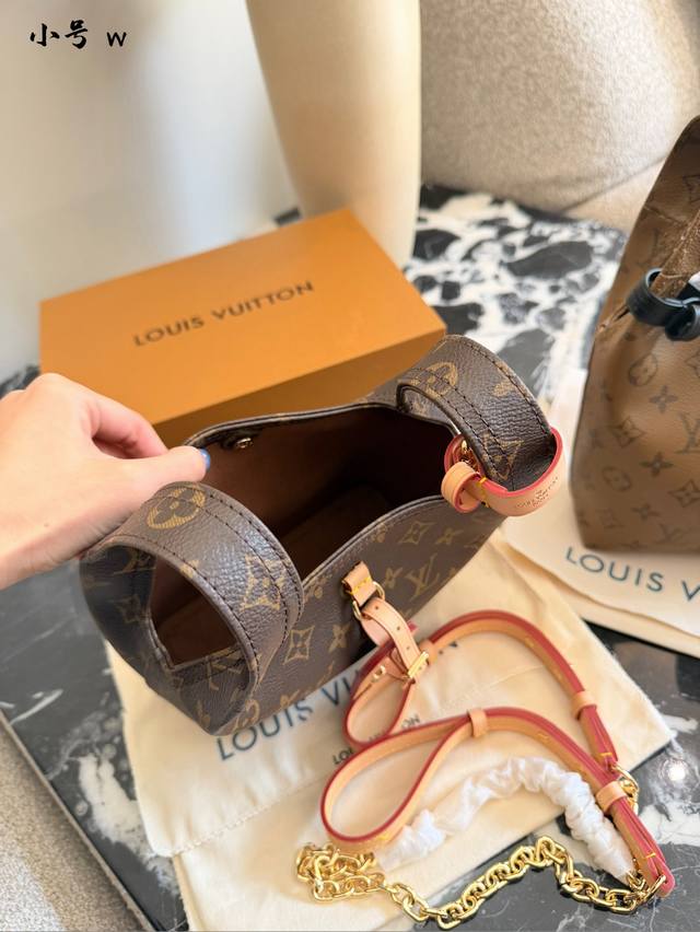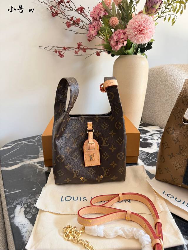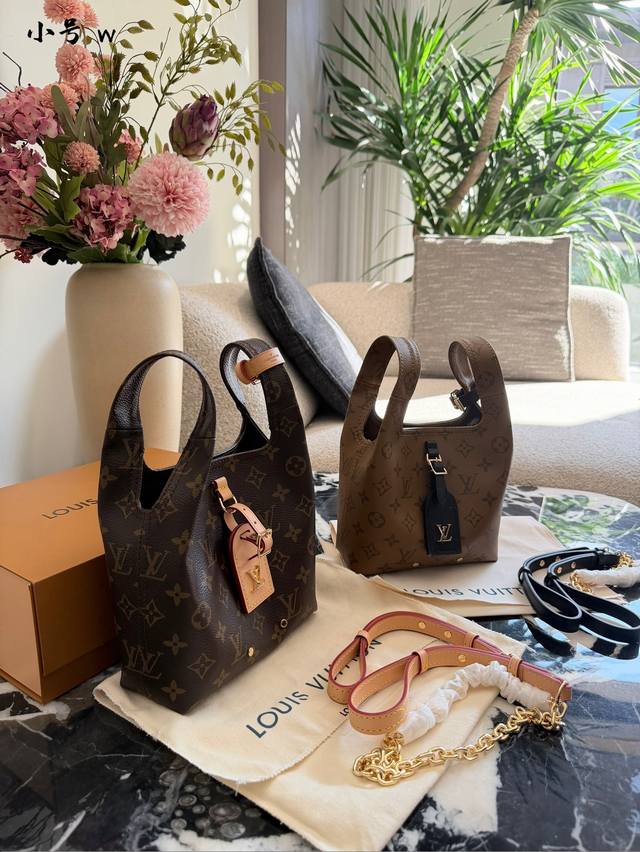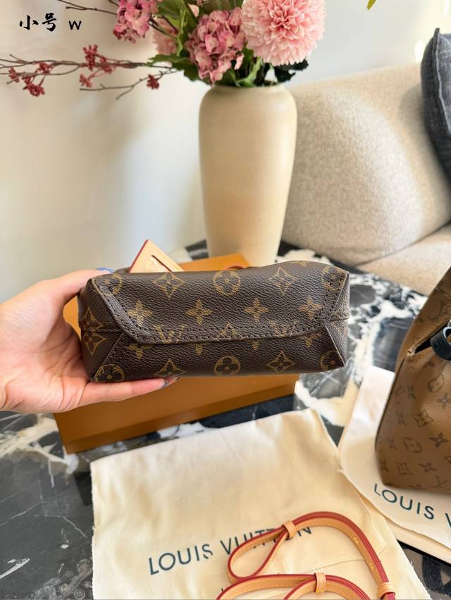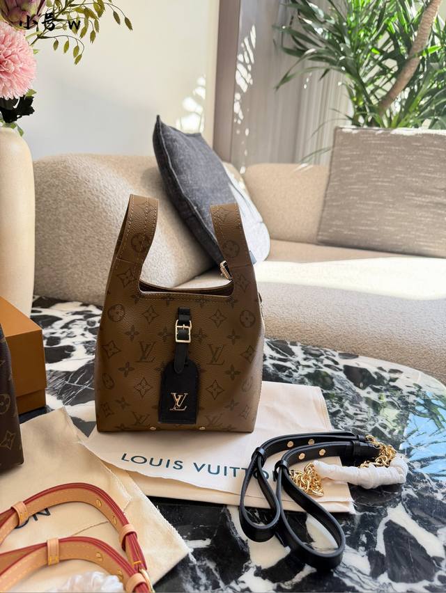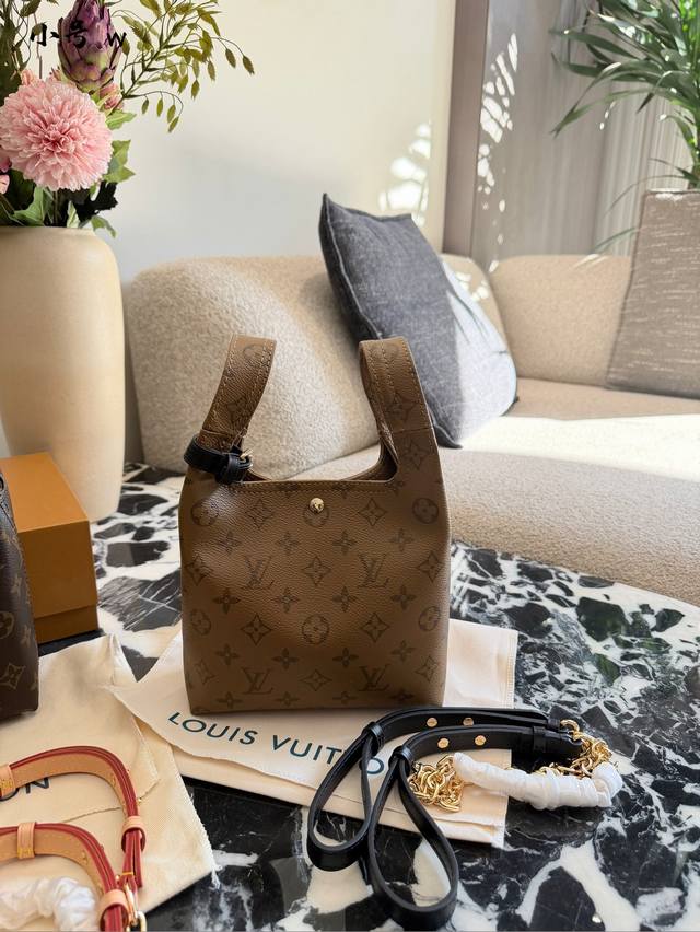 The LV Atlantis Bb handbag features classic Monogram Reverse canvas with cowhide leather trim, exuding a retro and elegant feel.