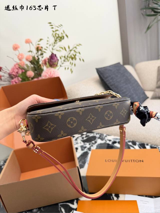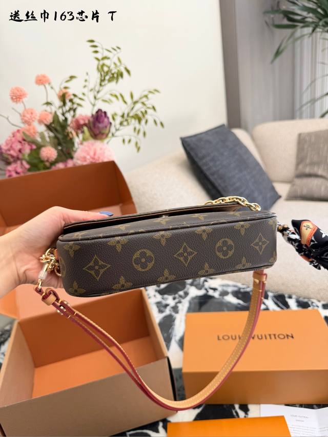 Lv Ivy Woc Handbag DDD The Lv Ivy Woc handbag is a classic style from Louis Vuitton's early spring collection. It features Monogram canvas with calfskin trim, a detachable metal chain and leather shoulder strap, and can be worn crossbody, over the shoulder, or under the arm. The bag is small and exquisite with a moderate capacity, making it suitable for daily commutes and shopping trips. Inspired by mahjong tiles, it's known as the "Mahjong Bag," simple, stylish, and practical, complementing various outfits and making it a super popular item in recent years. DDD 23.5cm Double Box Packaging DDD