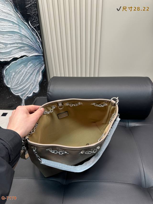 Lv Louis Vuitton New Chain Shopping Bag With Two Shoulder Straps, Can Be Carried By Hand Or Slung Over The Shoulder.