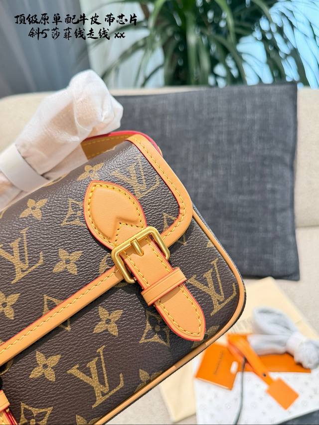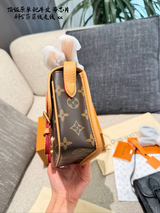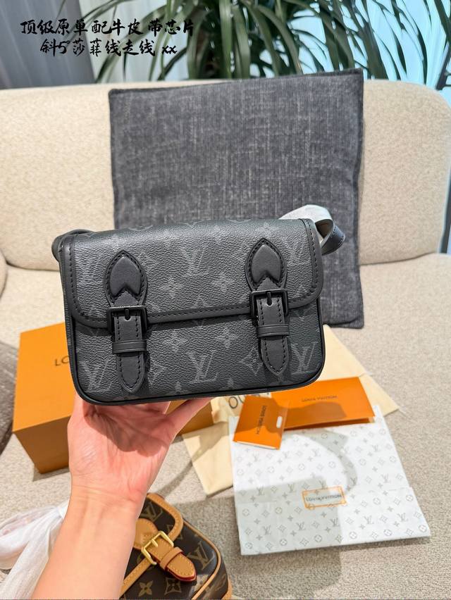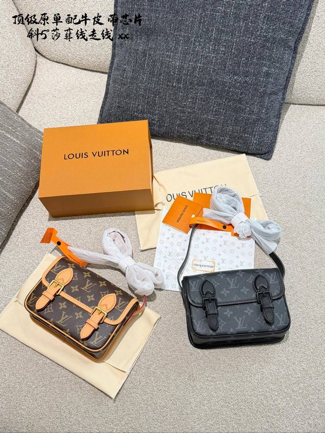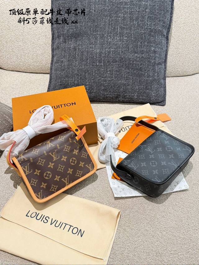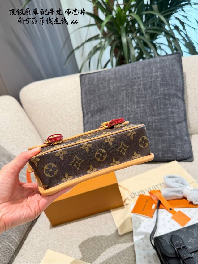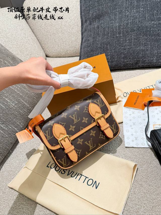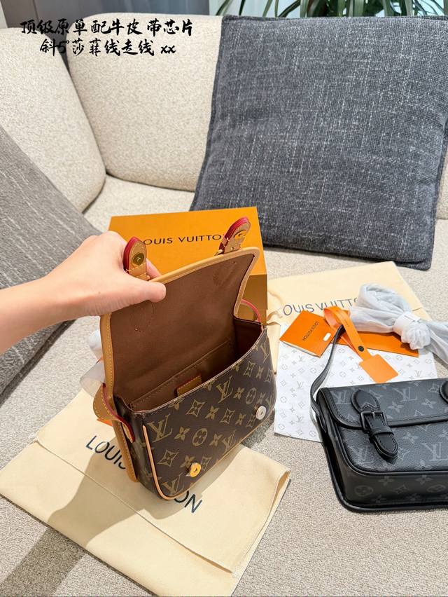 LV Satchel Mini Messenger Bag DDD The LV Satchel mini messenger bag features classic Monogram canvas with beeswax-colored leather trim, exuding a retro, preppy style. Measuring 19.5 x 15 x 7 cm, it's compact and exquisite. The adjustable shoulder strap allows for both shoulder and crossbody wear. The magnetic closure makes it easy to open and close. The interior space can hold a phone, cardholder, power bank, and other everyday essentials. Inspired by the classic 1932 messenger bag, it's practical and collectible, suitable for both commuting and casual wear. It's a popular item in recent years, easily worn by both men and women. 18 cm Double Box DDD