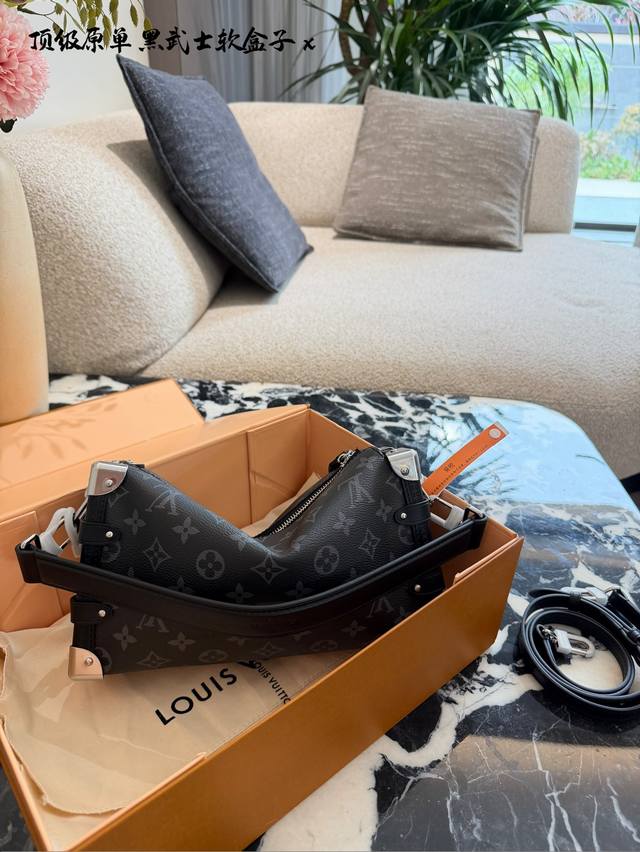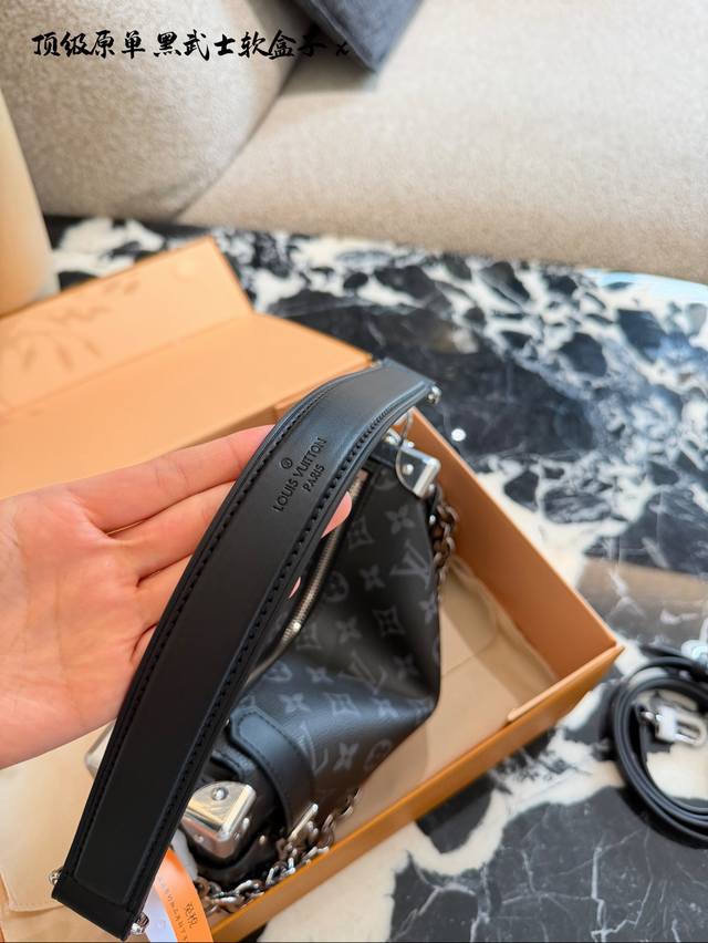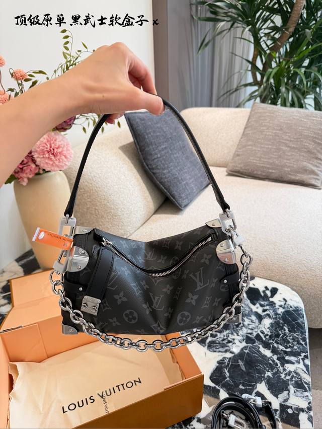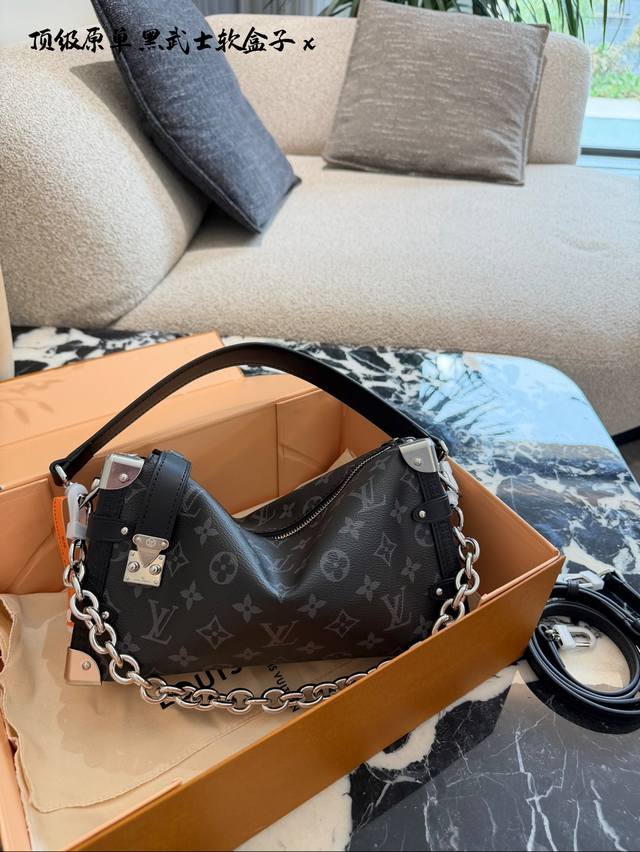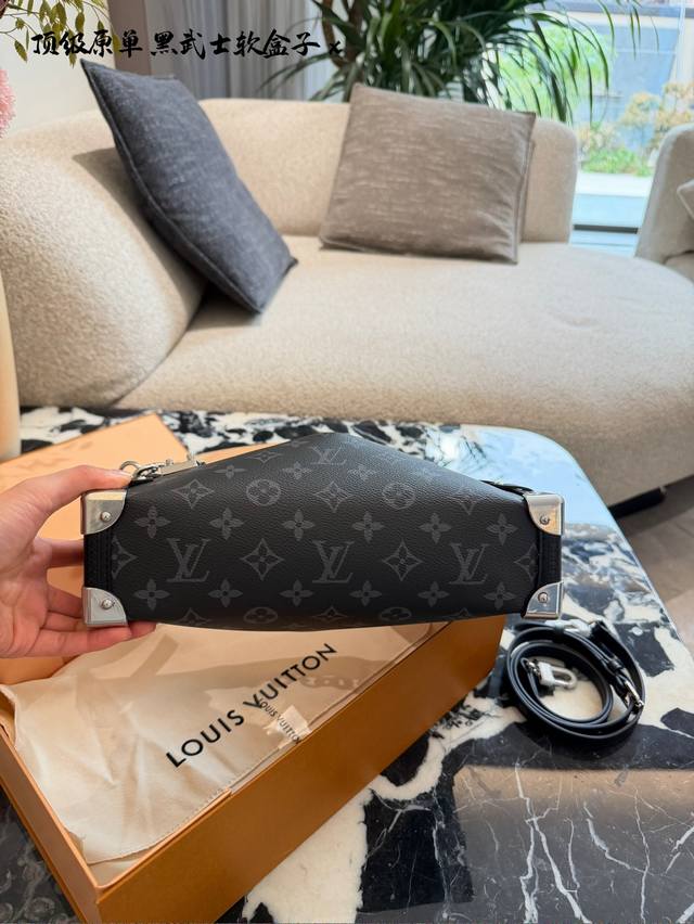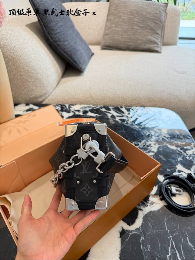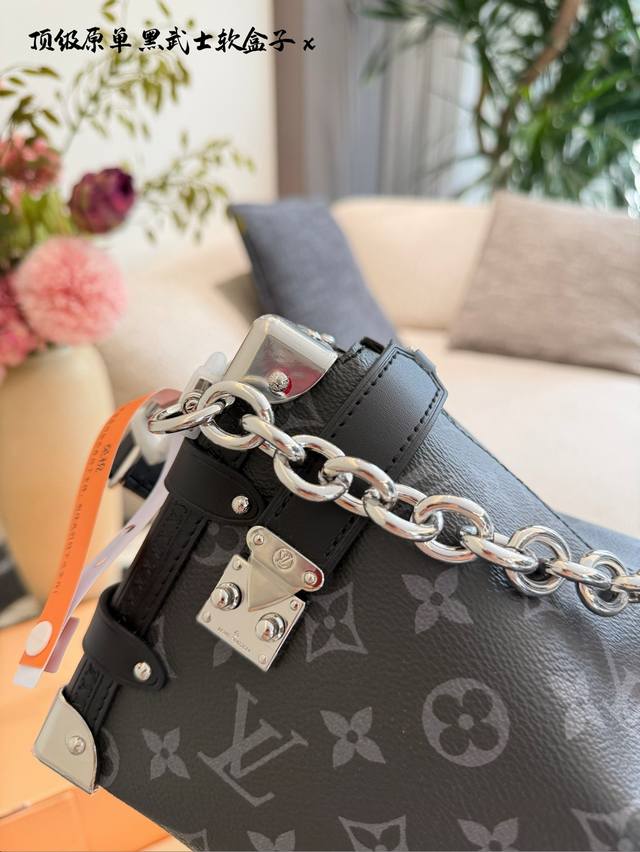 LV Side Trunk East West Black Floral Box Bag DDD C LV's Side Trunk East West black floral box bag is made of Monogram Eclipse canvas with black leather trim, understated yet sophisticated. The iconic box shape has strong lines, and the silver chain adds a touch of design flair. 25cm with box DDD