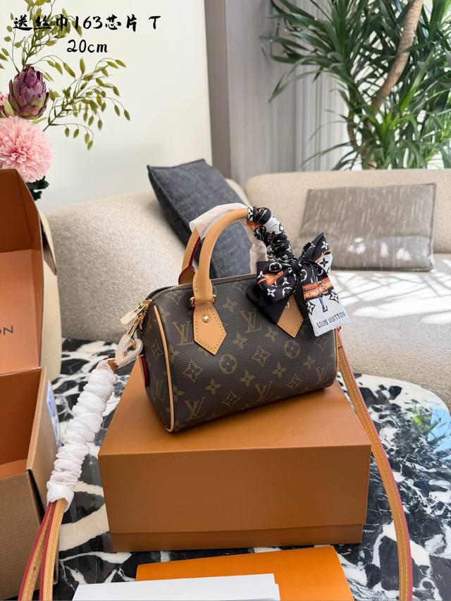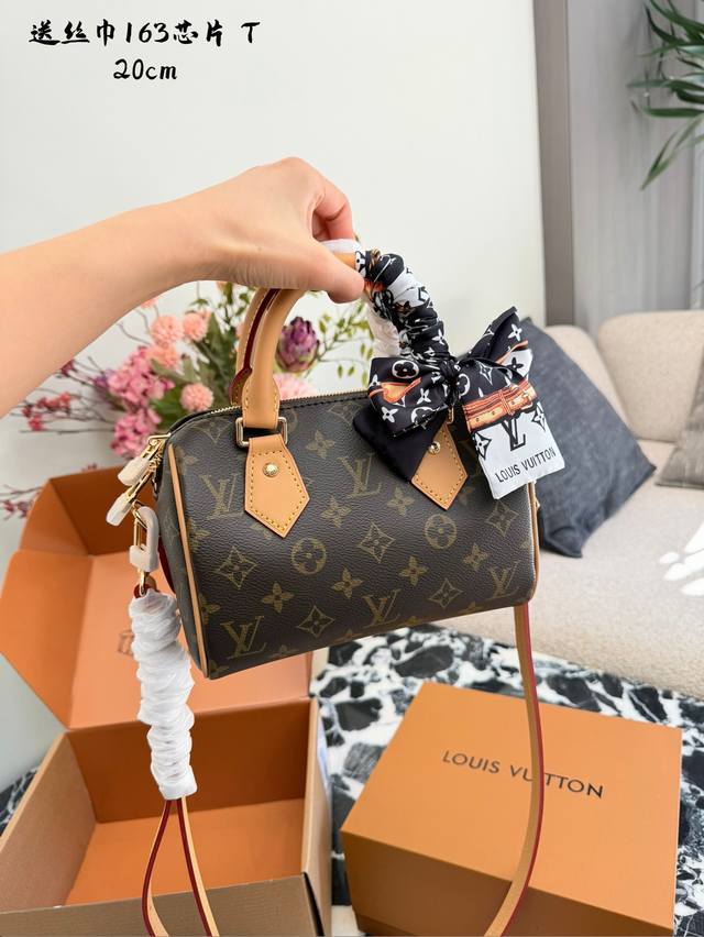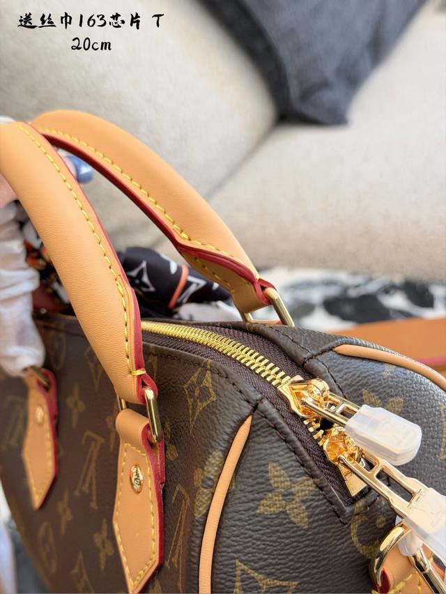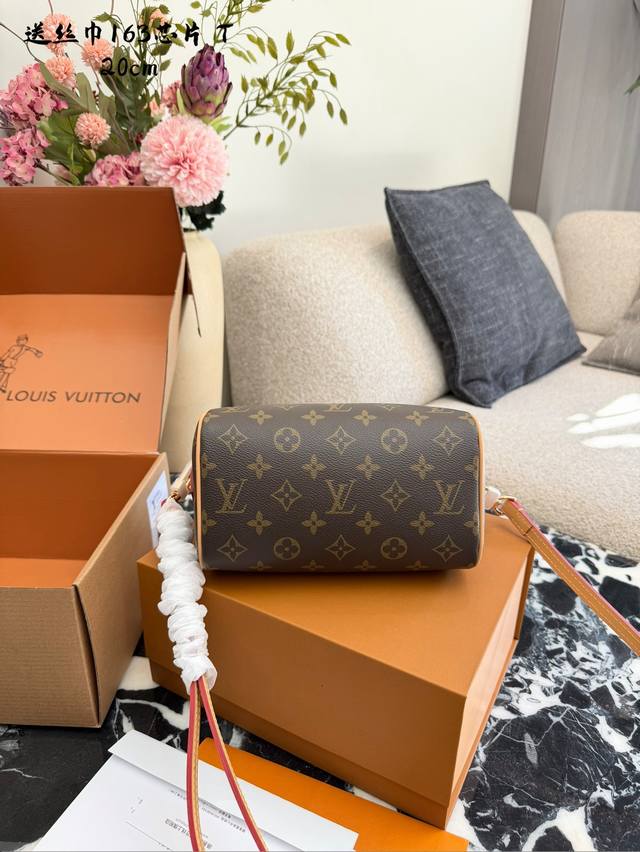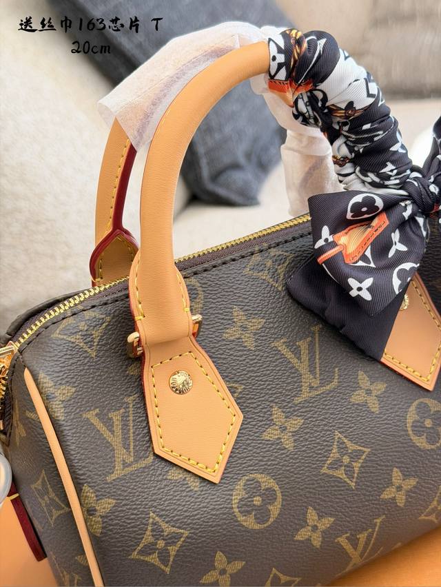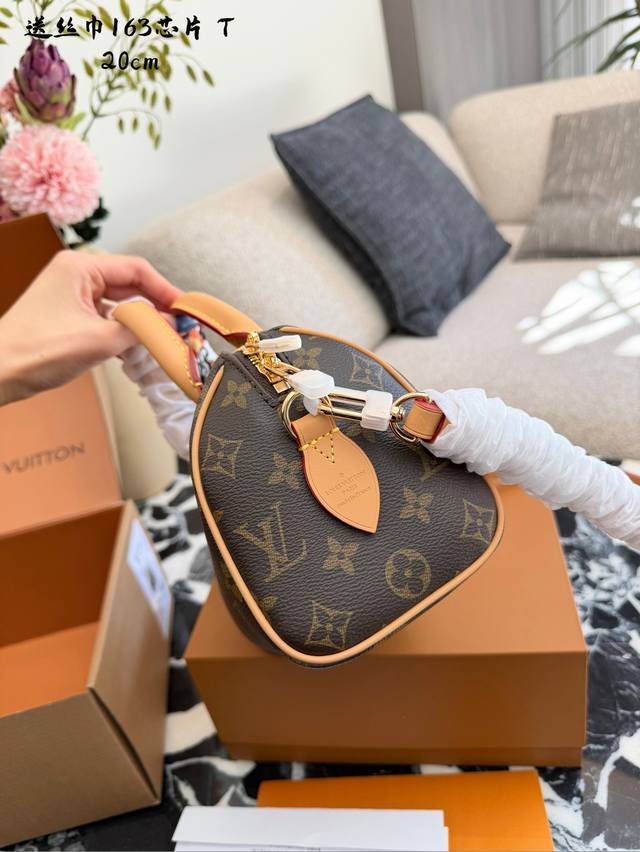 Lv Speedy 20 Pillow Bag DDD The Lv Speedy 20 pillow bag features classic Monogram canvas and a vegetable-tanned leather shoulder strap, offering a vintage, elegant, and durable look. Its compact size (20.5 x 13.5 x 10 cm) makes it perfect for daily commutes and casual outings. The adjustable shoulder strap allows for hand-carrying or crossbody wear, making it versatile and easy to style. DDD
