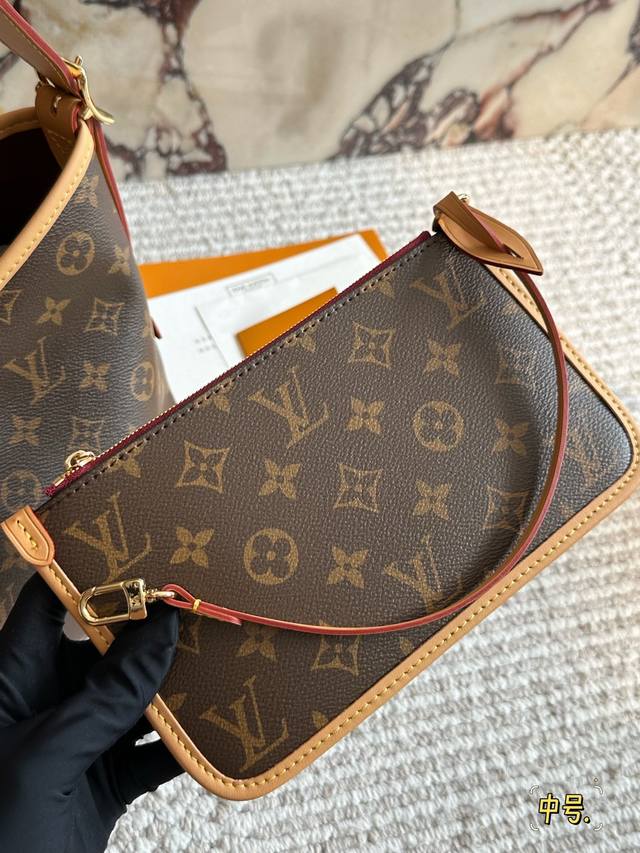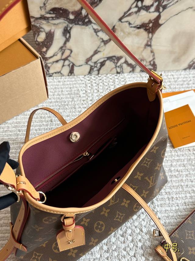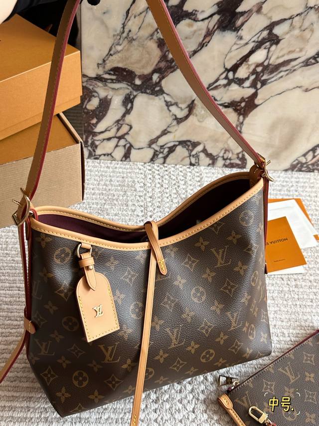 #Carryall V July New Arrival, can be worn crossbody or over the shoulder. Guaranteed capacity, open top with magnetic closure for easy access to tablets and laptops. Smaller than the Neverfull, with a wider shoulder strap for a less constricting fit; more playful than the Graceful, and looks great on. A true LV commuter bag with stunning design. 30cm