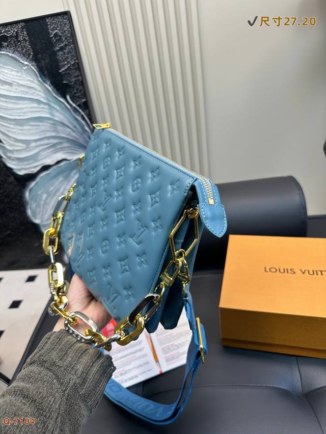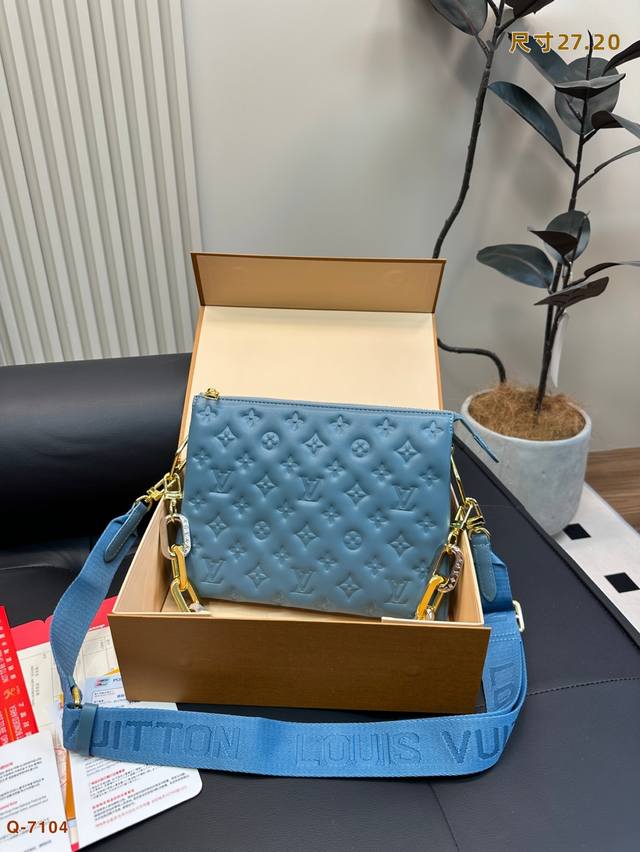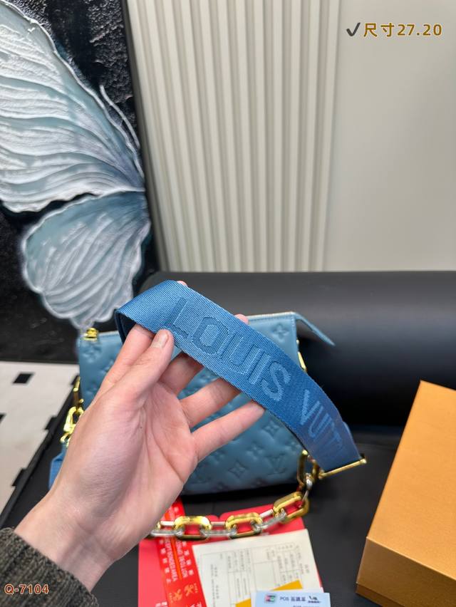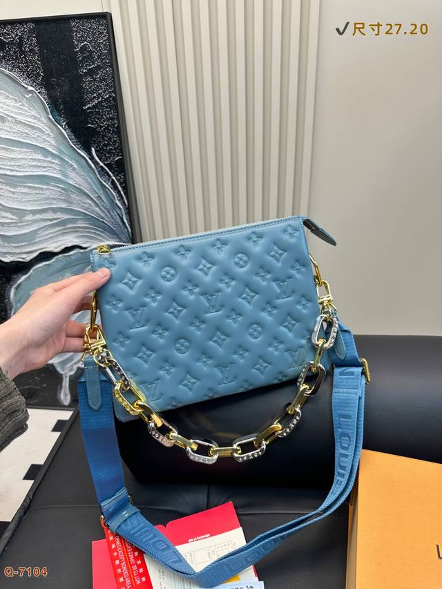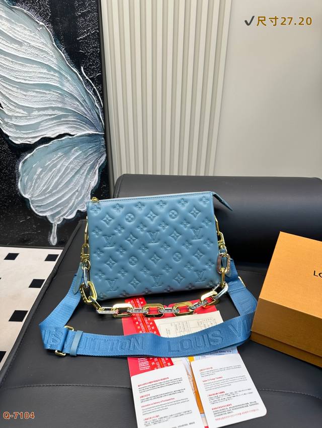 Lv Runway New Model Cousin, Likely To Be The Next Must-Have Item For Female Celebrities And Fashion Bloggers. The Unique Bright Gold Metal Shoulder Strap Is The Highlight Of This Design, Catching The Eye Perfectly. The Shoulder Strap Can Be Removed To Transform It Into A Handbag, Making It Perfect For Styling! Dimensions: 27 X 20