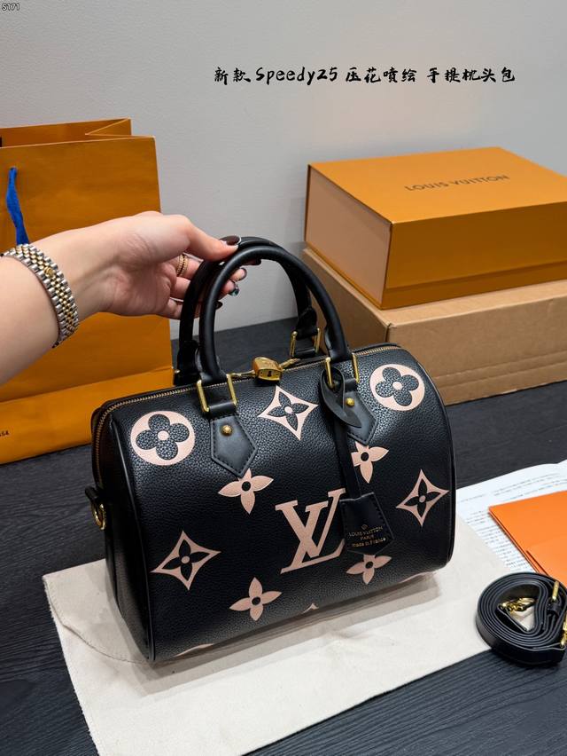 No Box DDD Lv Printed Embossed Speedy25 Boston Pillow Bag Tote Bag DDD This Retiro handbag features an iconic, classic, timeless, elegant, and understated design, while its spacious body adds practicality! Dimensions: 25*19Cm DDD