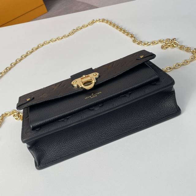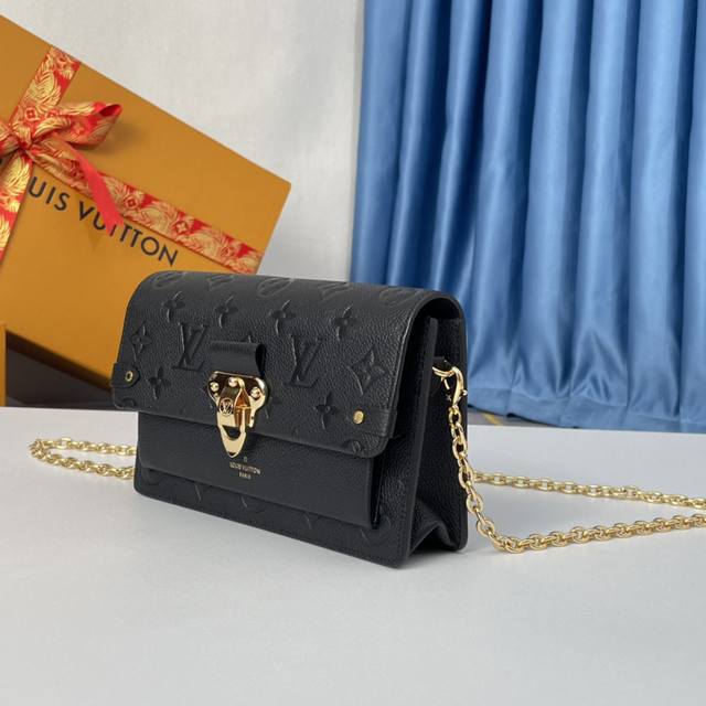 Overseas original M67839 black exclusive real shot! This Vavin wallet is made of Monogram Empreinte leather, and the lock is derived from Louis Vuitton hard case. The delicate embossed print and chain bag shape complement each other. The front pocket is printed with Louis Vuitton English words, which can store a mobile phone. The inner pocket and compartment are convenient for taking and putting items. Size: 19