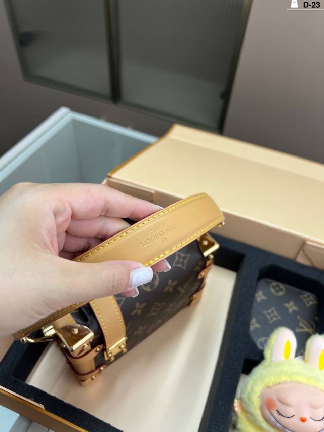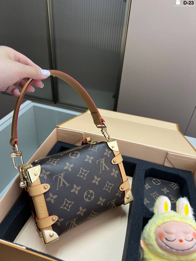 Original Cowhide Leather Steel Hardware Double Box Packaging With Handle Bag Lv