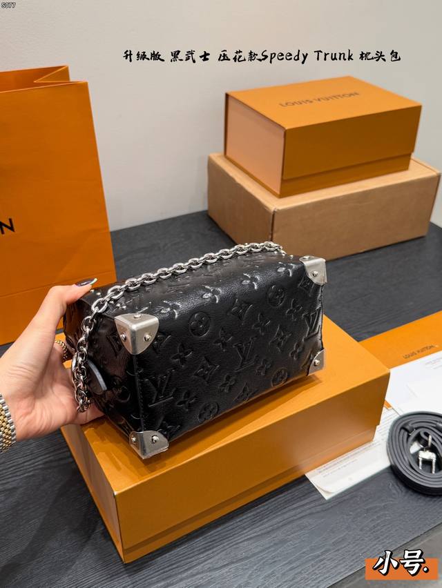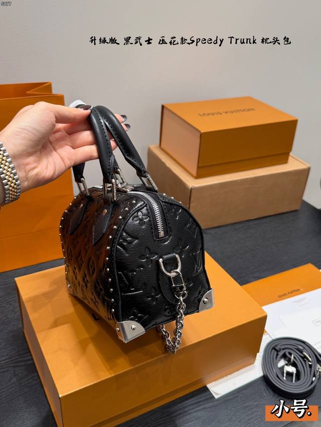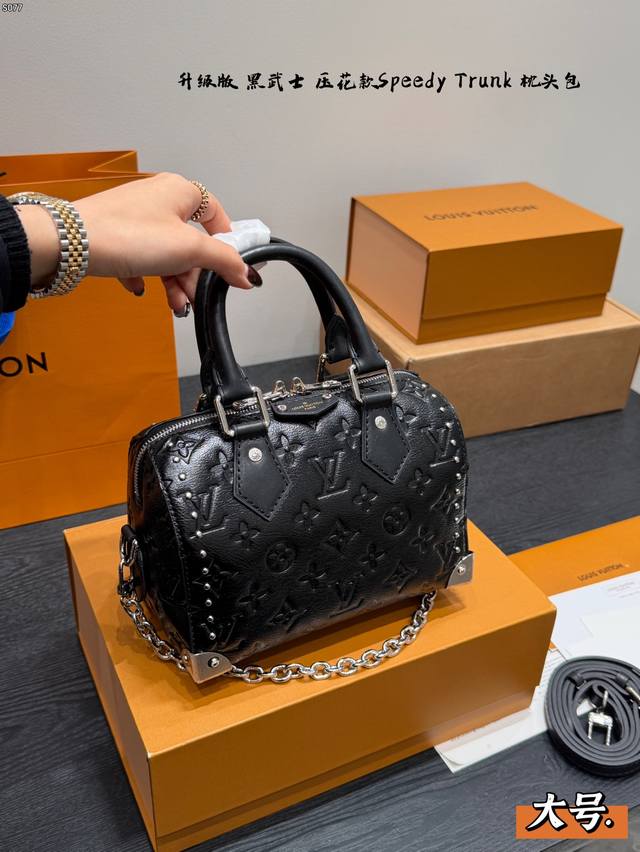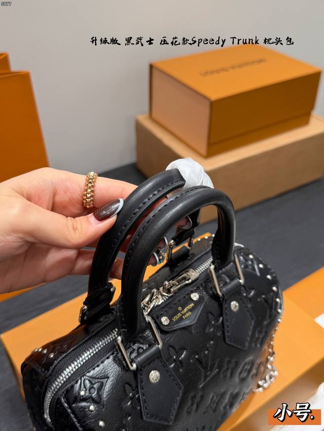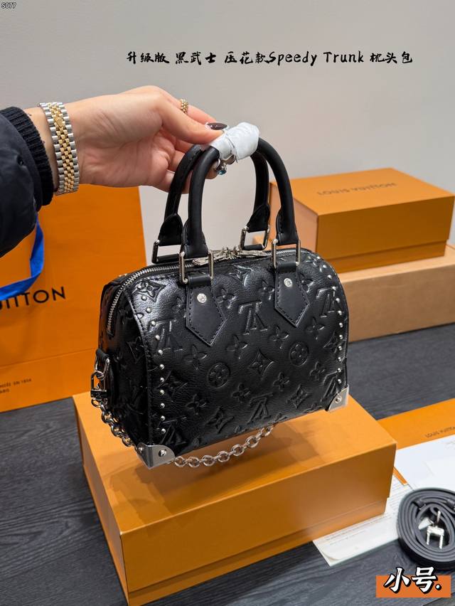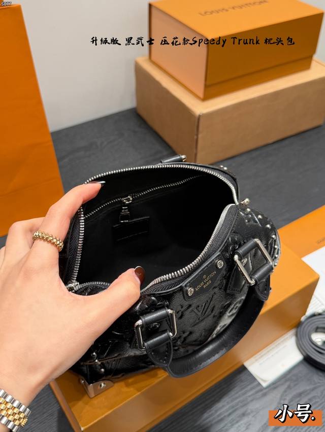 Small Full Gift Box Packaging DDD Upgraded Version! DDD Lv Black Warrior Embossed Cruise 25 Bag DDD Runway Style Studded Pillow Bag Handbag Speedy 25 Trunk Pillow Bag with Iron Legs DDD Lv This 2025 Early Spring New Arrival in Barcelona is so beautiful DDD Small Size 20Cm DDD