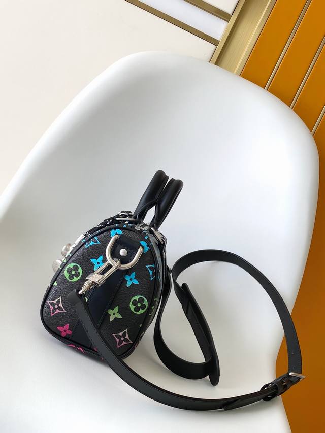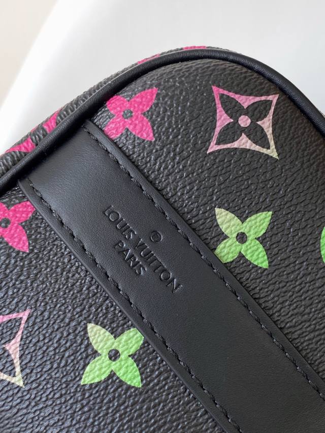 163C01 Chip M13935 Top-tier original M11591 M46271 Black Floral Pillow Bag. This Keepall 25 handbag is crafted from Monogram Eclipse Reverse canvas, showcasing an elegant reinterpretation of Louis Vuitton's classic pattern. Reinforced straps and a leather nameplate continue the iconic elements of the Keepall series, while a zipper closure securely holds personal belongings. Dimensions: 25.0 x 15.0 x 11.0 cm (Length x Height x Width).