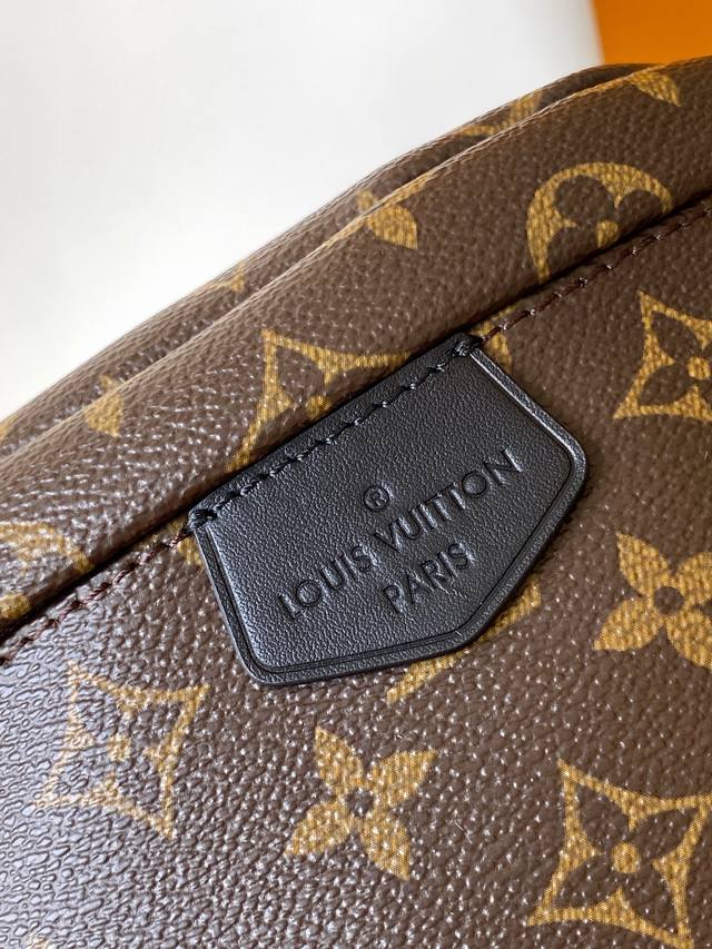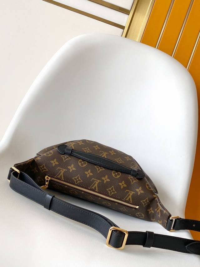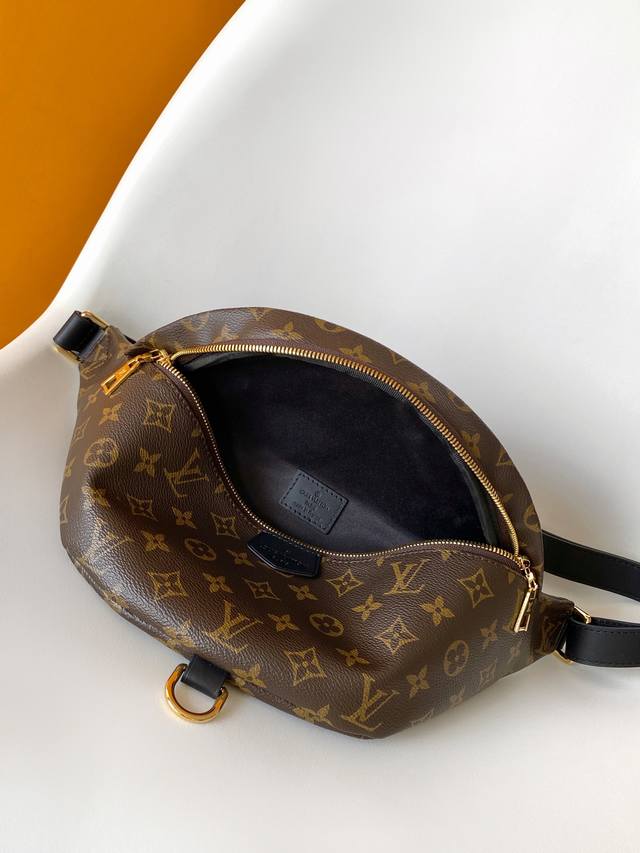 163C01 Chip M43644 Black Leather Premium Original Bumbag. Crafted from classic Monogram canvas and embellished with the "Louis Vuitton Paris" leather patch, this belt bag adds a touch of authentic chic and casual flair to any sporty look. Wear it as a belt bag, over the shoulder, or crossbody for a stylish and personal touch. Size 37cm x 14cm x 13cm