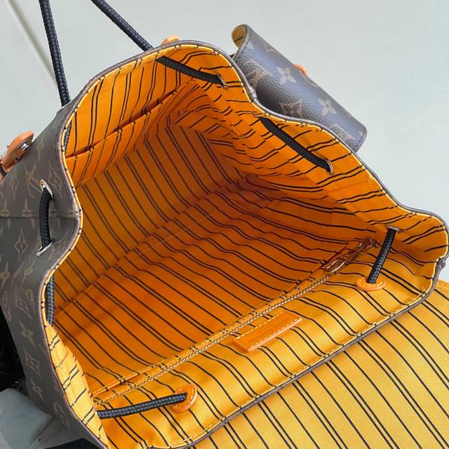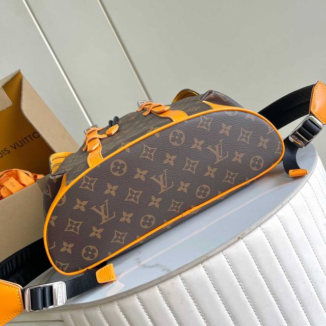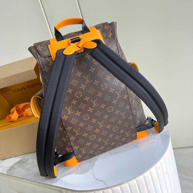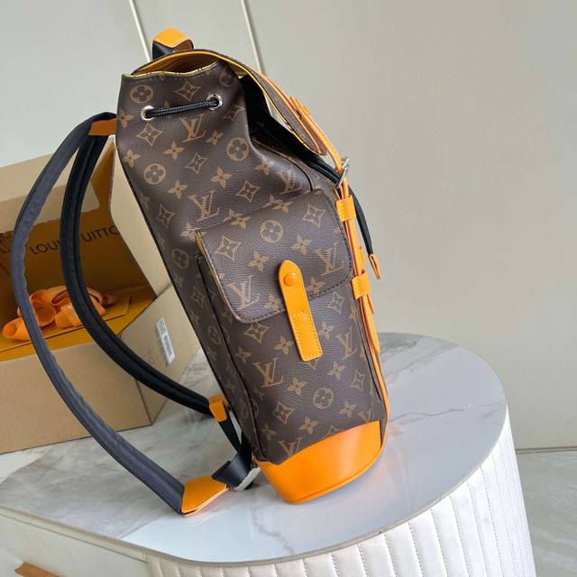 163C01 Chip version, internal price p, Style No.: M13202, Original Enhanced Edition, Exclusive Real Photos Background Image. This Christopher Medium Backpack from the LV Colormania collection features Monogram Macassar canvas with vibrant leather trim, contrasting with the fabric lining. Side pockets offer ample storage, with drawstrings and snaps for easy closure. 44x12.5x38cm