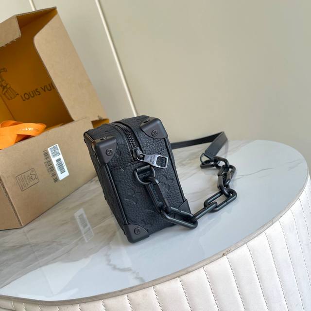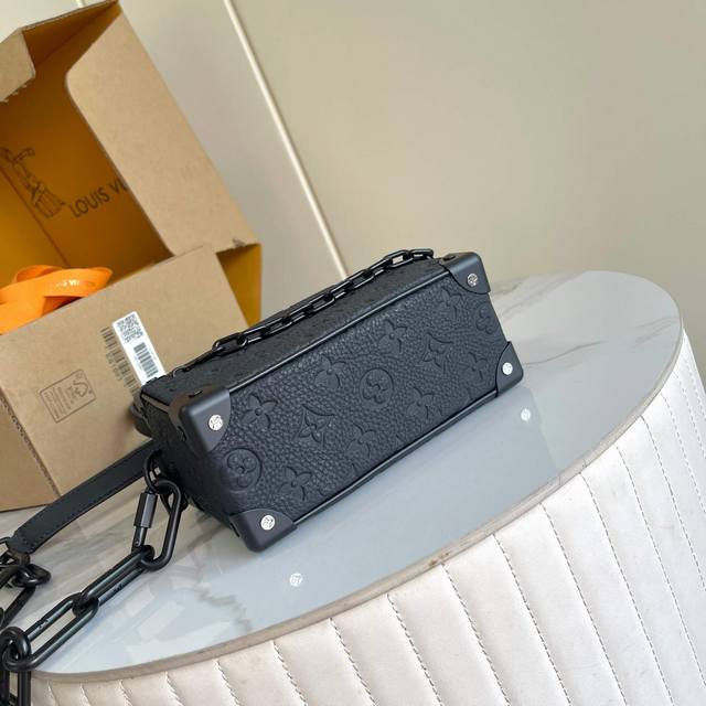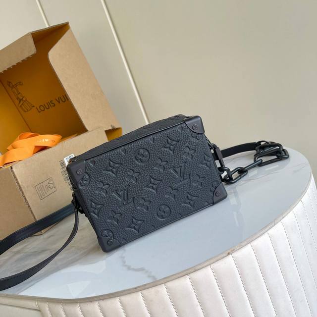 163C01 Chip Version Internal Price p Style Number: M55702 Original Enhanced Edition Exclusive Real-Life Photos Background Image. The Soft Trunk Mini Handbag is crafted from Taurillon leather embossed with the Monogram pattern, featuring riveted corners and a boxy shape, embodying the spirit of Louis Vuitton's traditional trunk design. A matte chain connects to the zipper, while another cleverly integrated shoulder strap injects modern charm into the sophisticated design. Taurillon leather, fabric lining, cowhide trim, matte metal hardware, zippered exterior pocket, interior patch pocket, and a non-detachable, adjustable shoulder strap! Dimensions: 18.5 x 13 x 8 cm