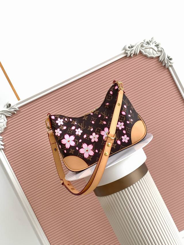 This Boulogne handbag, from the Louis Vuitton x Takashi Murakami Replica Collection, features Monogram coated canvas accentuating the vibrant Cherry Blossom pattern. Classic leather frames the detachable studded shoulder strap and corners, while gleaming hardware enhances the sophisticated finish.
