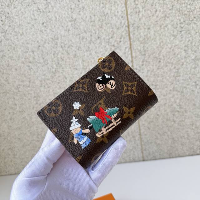Authentic Grade DDD Top-Tier Original M15334 Adorned with a whimsical illustration of the manor's mascot, "Portofoille Lisa" from the "Vivienne Winter Holiday" collection. Utilizing a single canvas symbolizing Louis Vuitton, and painted with gold zippers mimicking "Vivienne." Dimensions: 9 x 11.5 x 1.5 cm. DDD