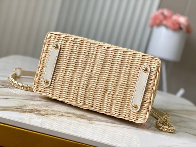 Authentic raw materials, premium dynamic chip Lv x Tm Capucines handbags M14295 M48865 white cherry bamboo basket. This Capucines handbag evokes the Louis x Murakami replica series with striking details, using fresh elements to enhance the trendy style. The rattan body complements the handles, woven shoulder strap, and Lv monogram. The top flap is delicately embellished with a cherry pattern. Size: 27 * 18 * 9 cm