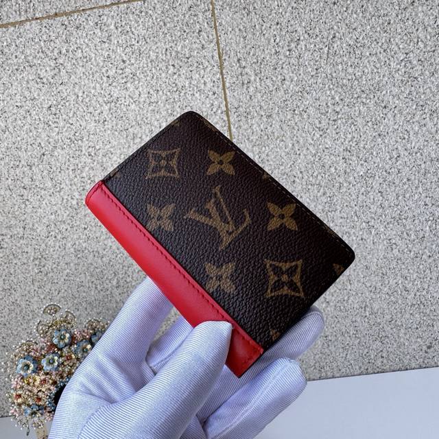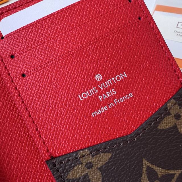 Authentic, top-grade, original 12830 red wallet. Compact in size, it fits easily into any pocket, a charming "Organizer de poche." Crafted from Monogram Macarthur canvas and featuring a dyed cowhide leather back, this unique design is part of the "Louis Vuitton Color Mania" collection. Dimensions: 7.5 x 11.1 x 1 cm.