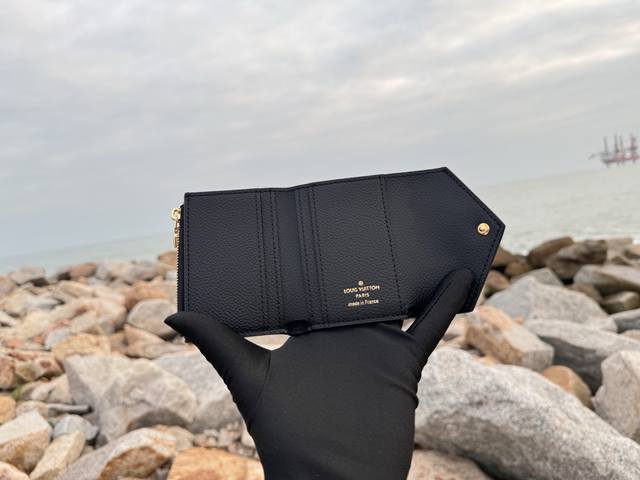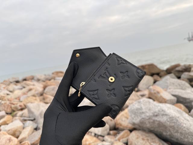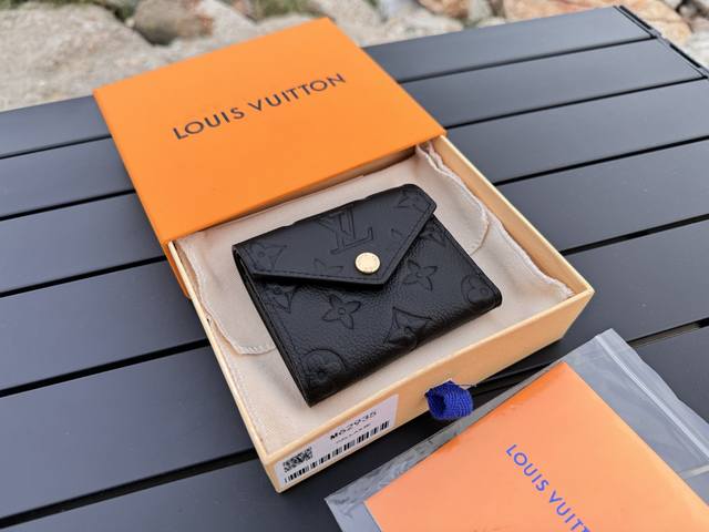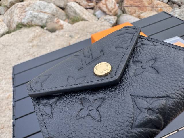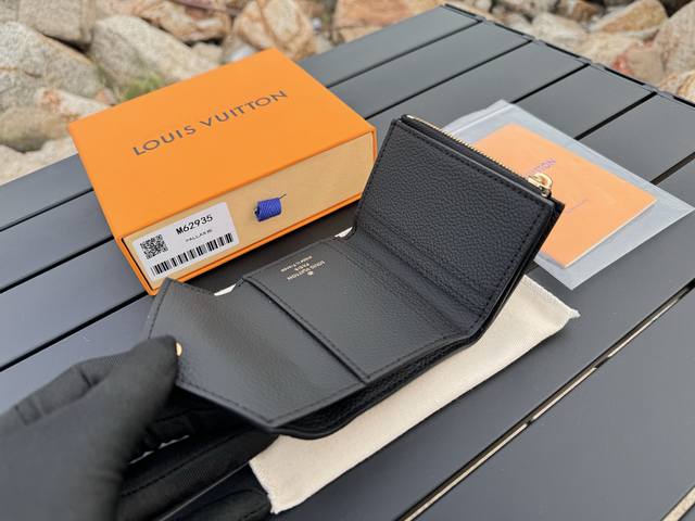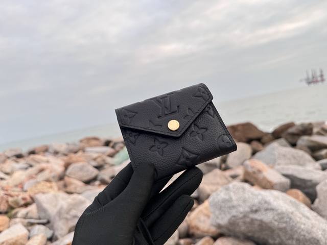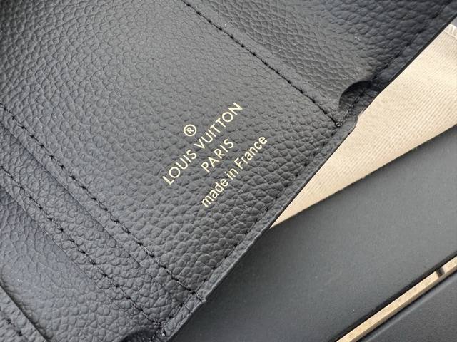 , top-grade original M62935 black. This Zoe compact wallet is crafted from supple Monogram Empreinte grained leather and features the classic Louis Vuitton Monogram pattern. It easily fits into a small bag or clutch, yet is large enough to hold coins, bills, and credit cards, making it a compact accessory. Dimensions: 9.5 x 7.5 x 3.